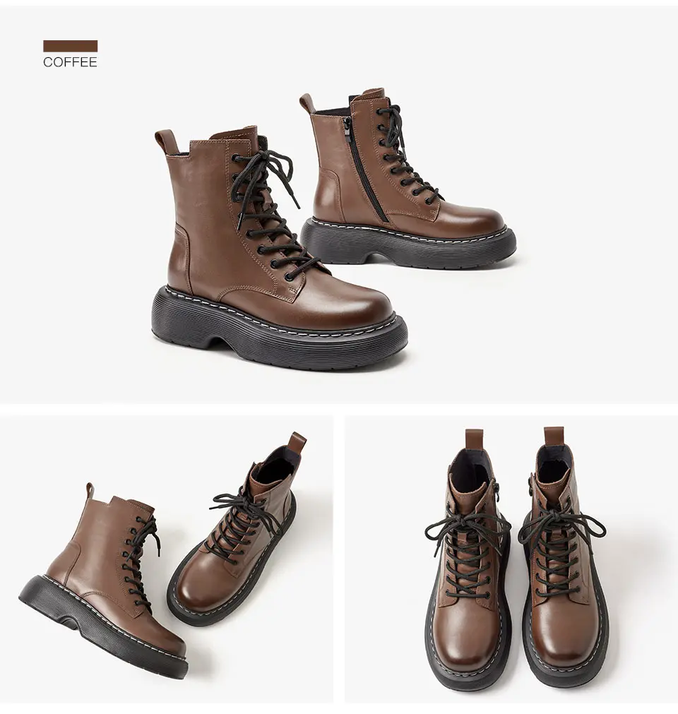 BeauToday Ankle Boots Women Cow Leather Platform Side Zipper Cross-tied Lace Sewing Female Autumn Shoes Handmade 04490