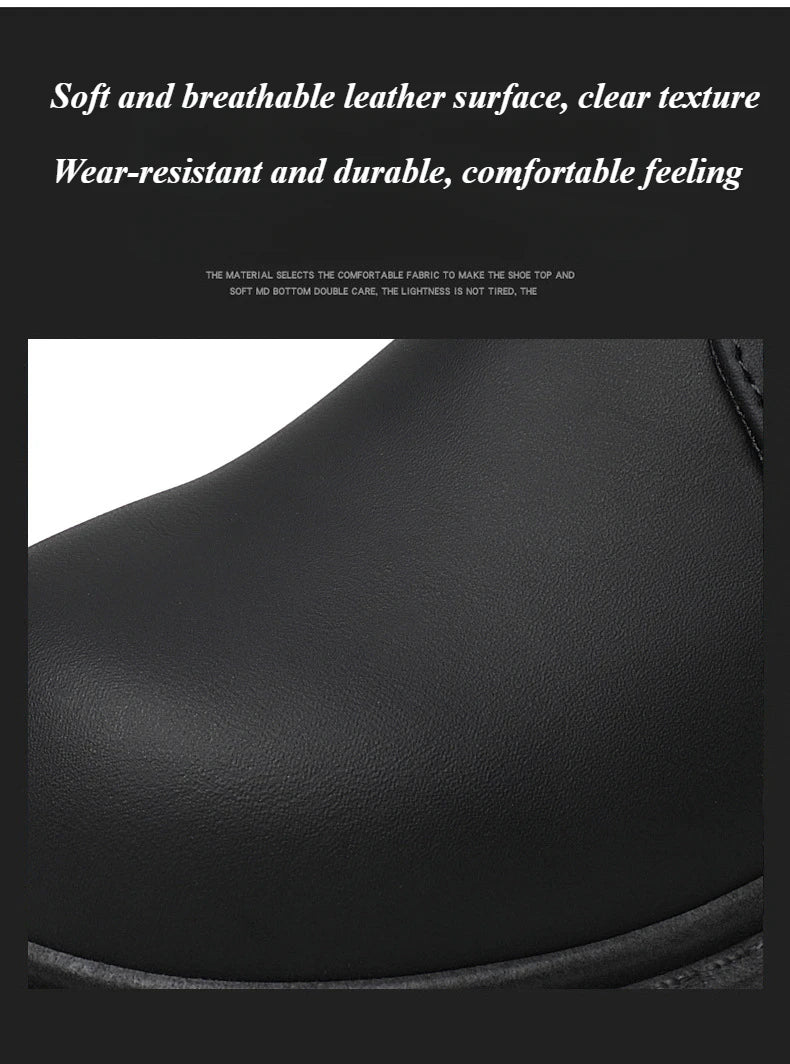 Black Leather Boots for Men High Top Platform Lace Up Light Fashion Motorcycle Boots British Style Men's Waterproof Casual Boots