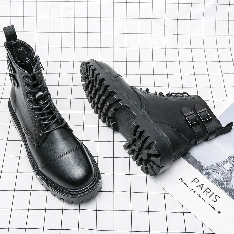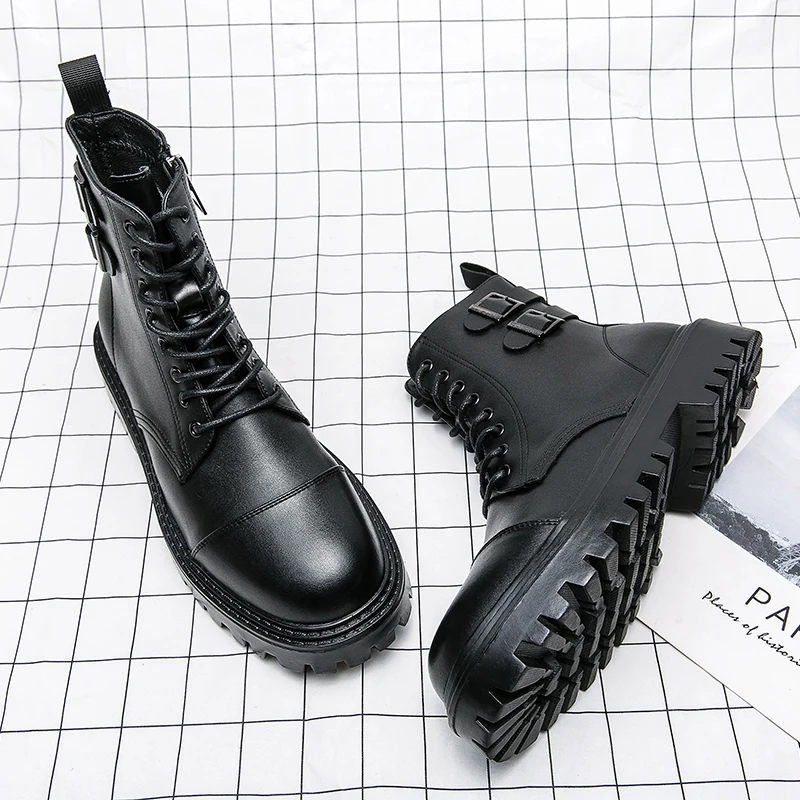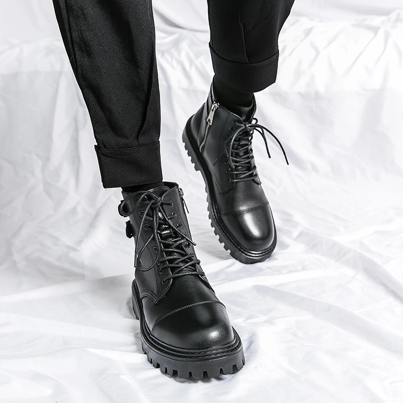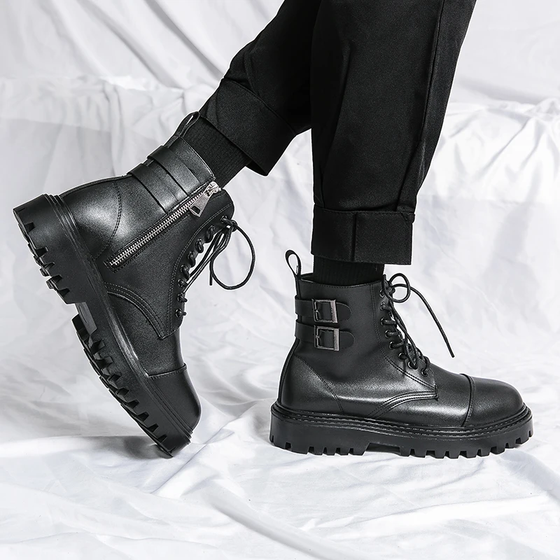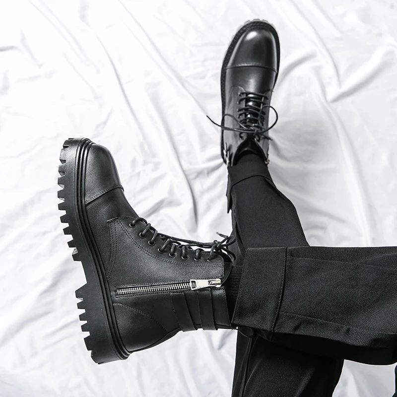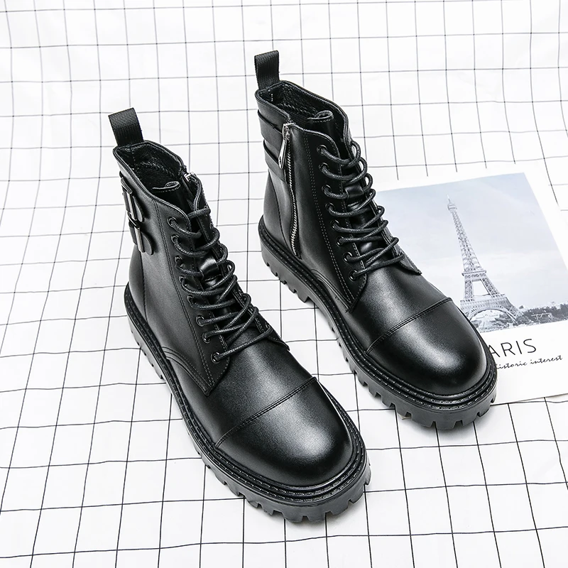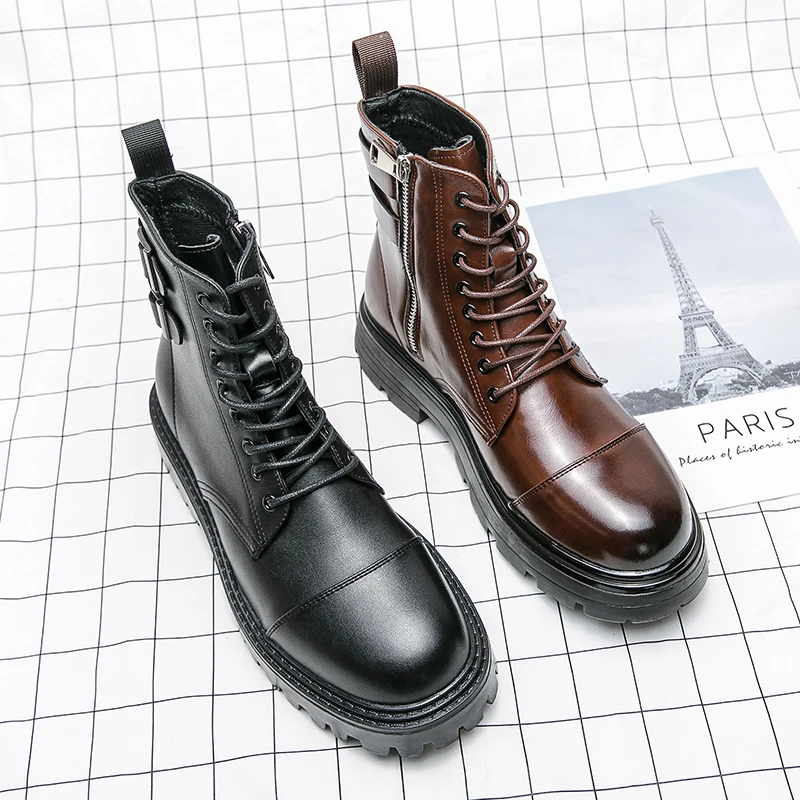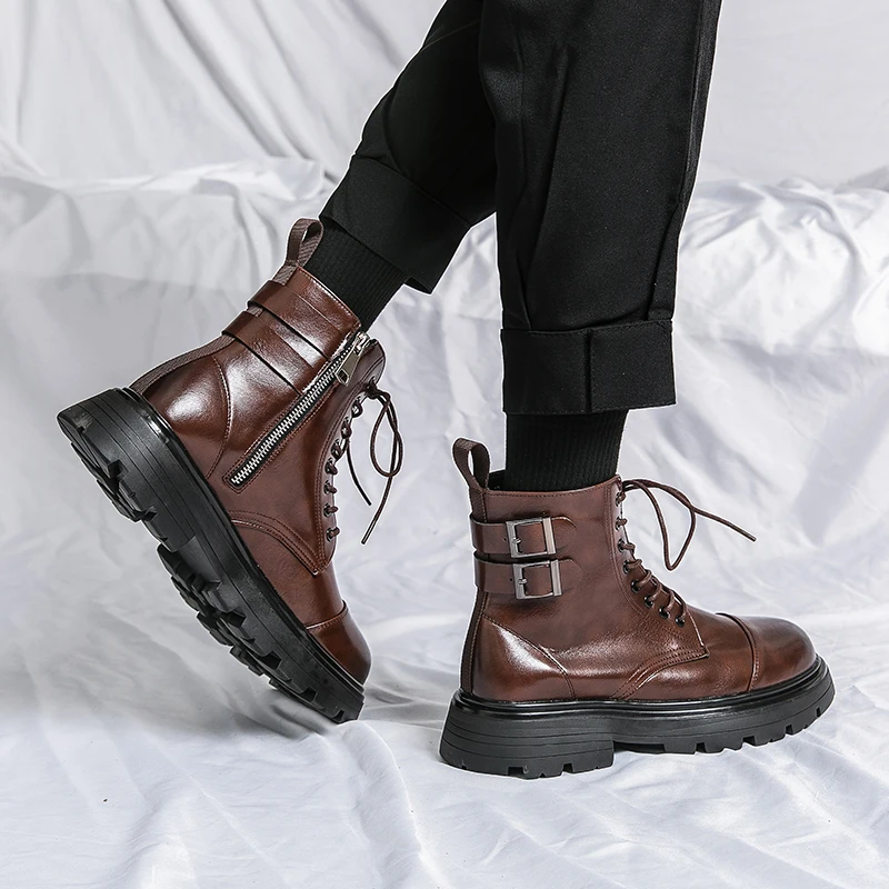 Brand Men's Genuine Leather Boots Thick Soles High-quality Workwear Boots Men's High Top Casual Shoes Knight Motorcycle Boots