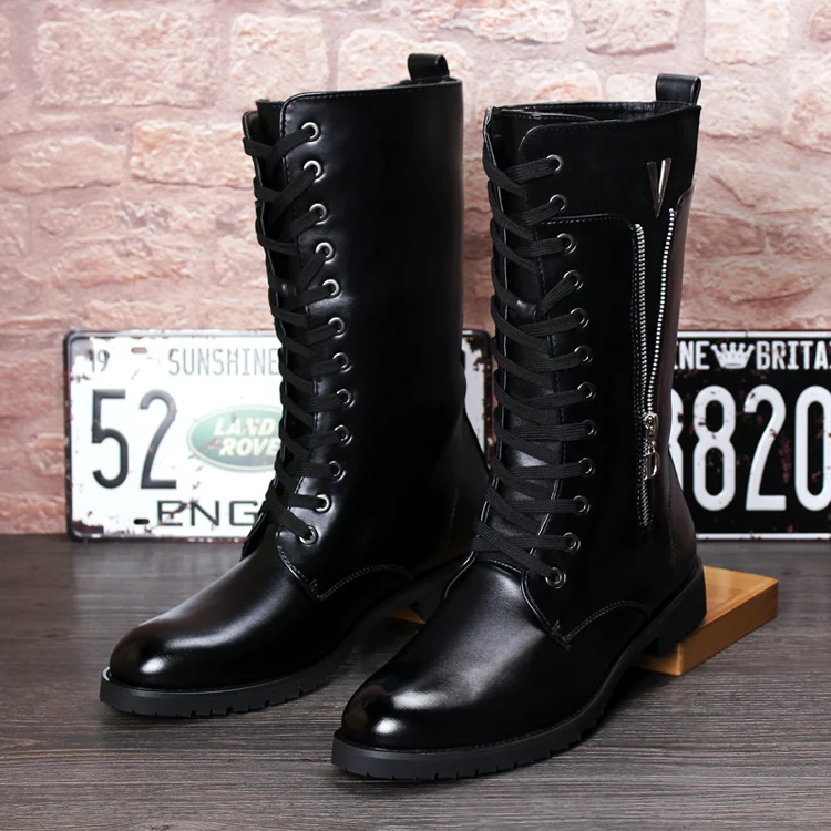 British fashion motorcycle boots for men genuine leather shoes cowboy high boot lace-up long botas masculinas zapatos de hombre