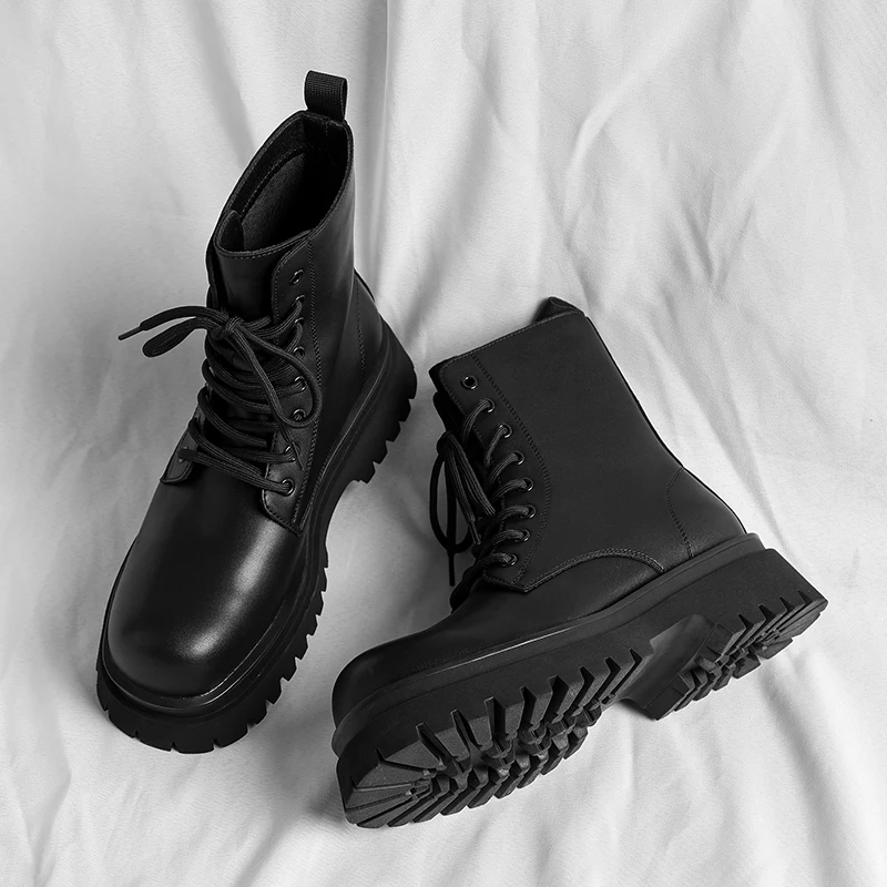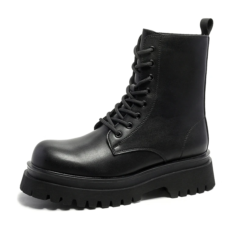 British style men luxury fashion platform boots lace-up genuine leather shoes cowboy chunky boot handsome high motorcycle botas