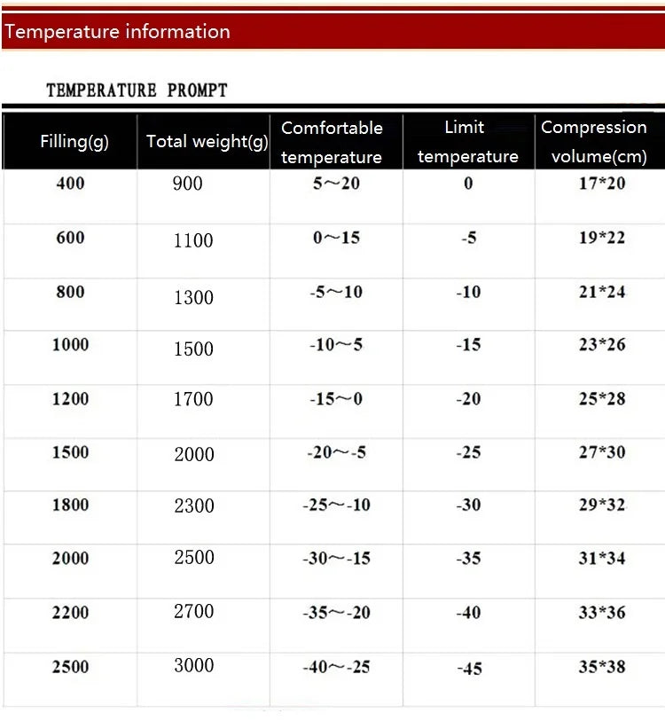 Sleeping Bag Temperature Scale Category: Winter Sleeping Bag