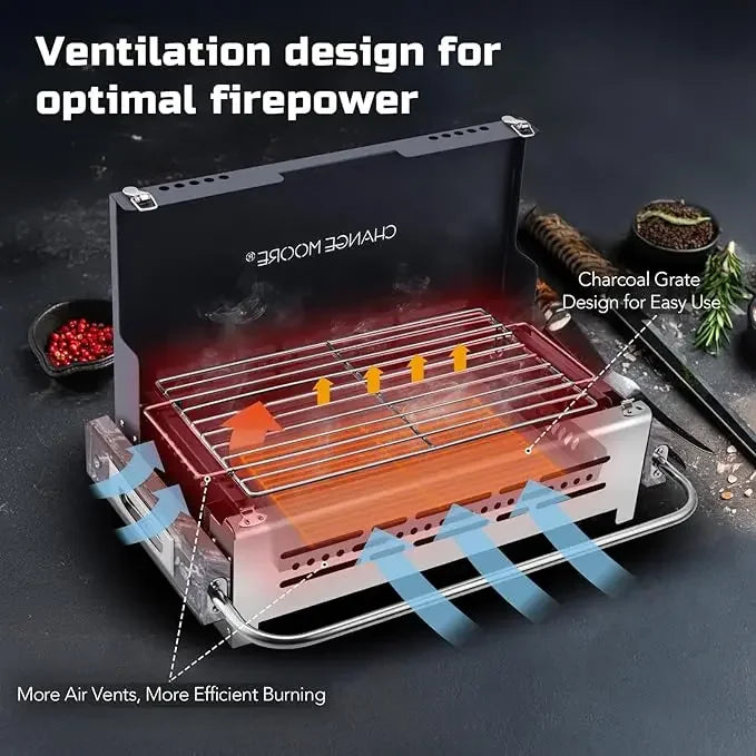 CHANGEMOORE Outdoor Camping Stove 304Stainlee Steel BBQ Grill Portable with Heat-Resistant Handles Camping Garden Picnic Outdoor