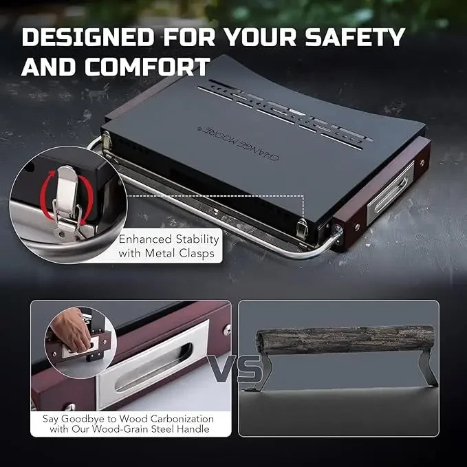 - Portable and Secure Folding Structure: This foldable barbecue grill is designed with side buckles to keep it securely closed during transport, preventing it from accidentally unfolding. The clever folding structure makes it easy to carry and convenient to use