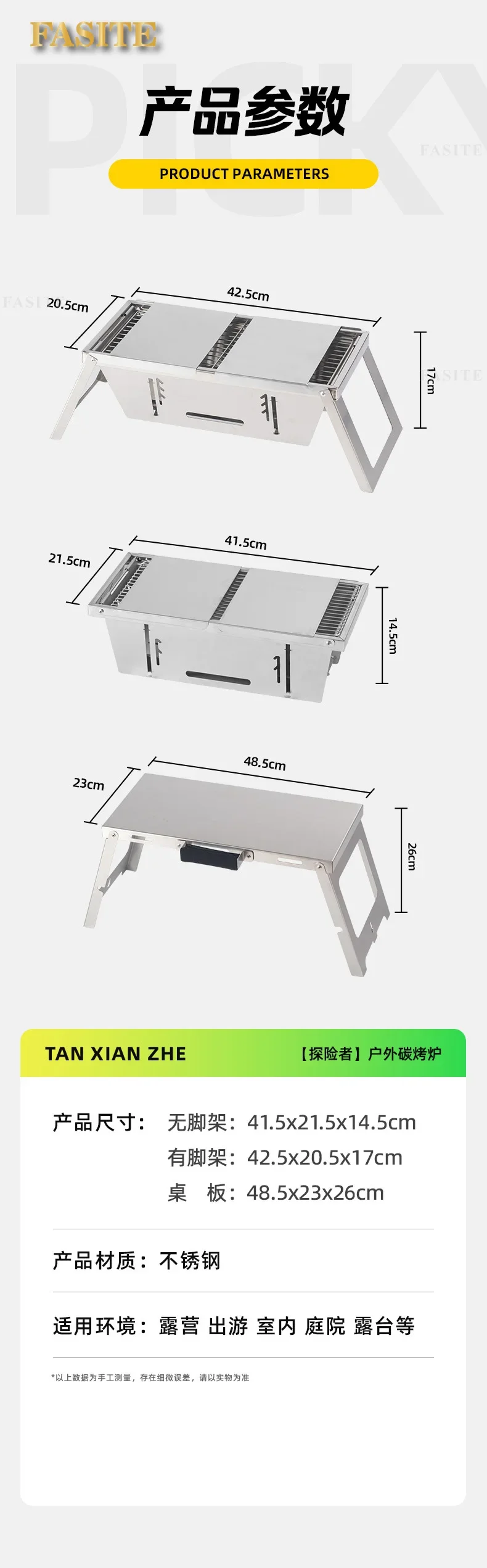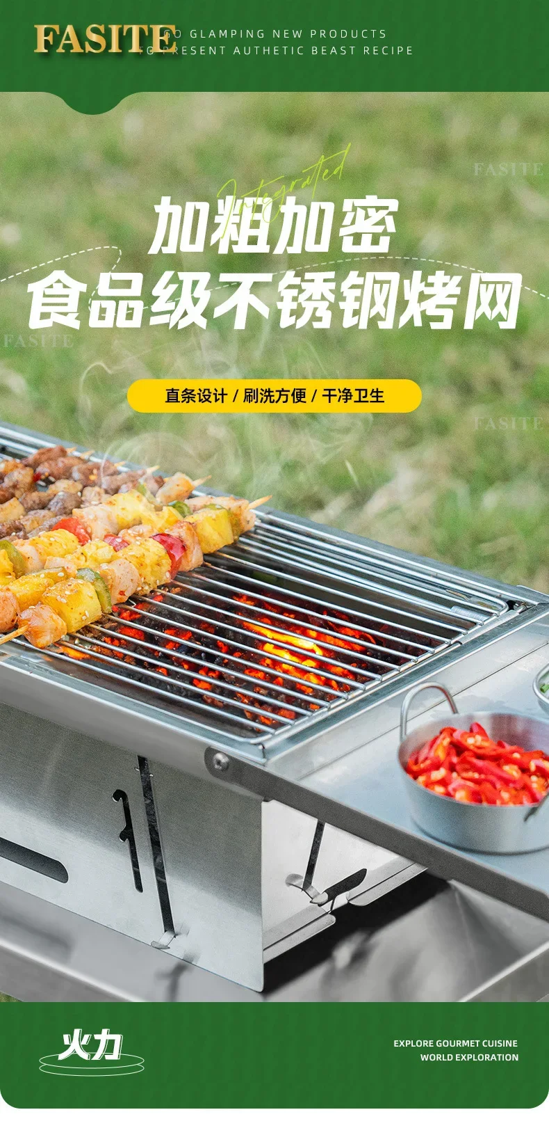 Commercial Folding BBQ Grills Portable Firewood Barbecue Utensils Cookware Brazier Charcoal Garden
