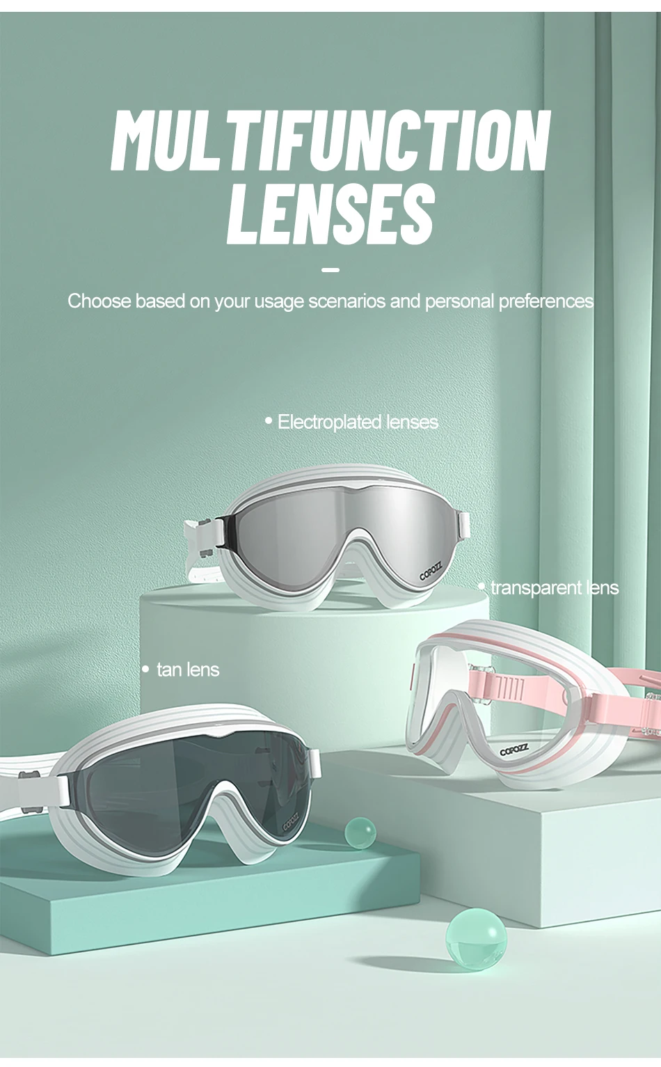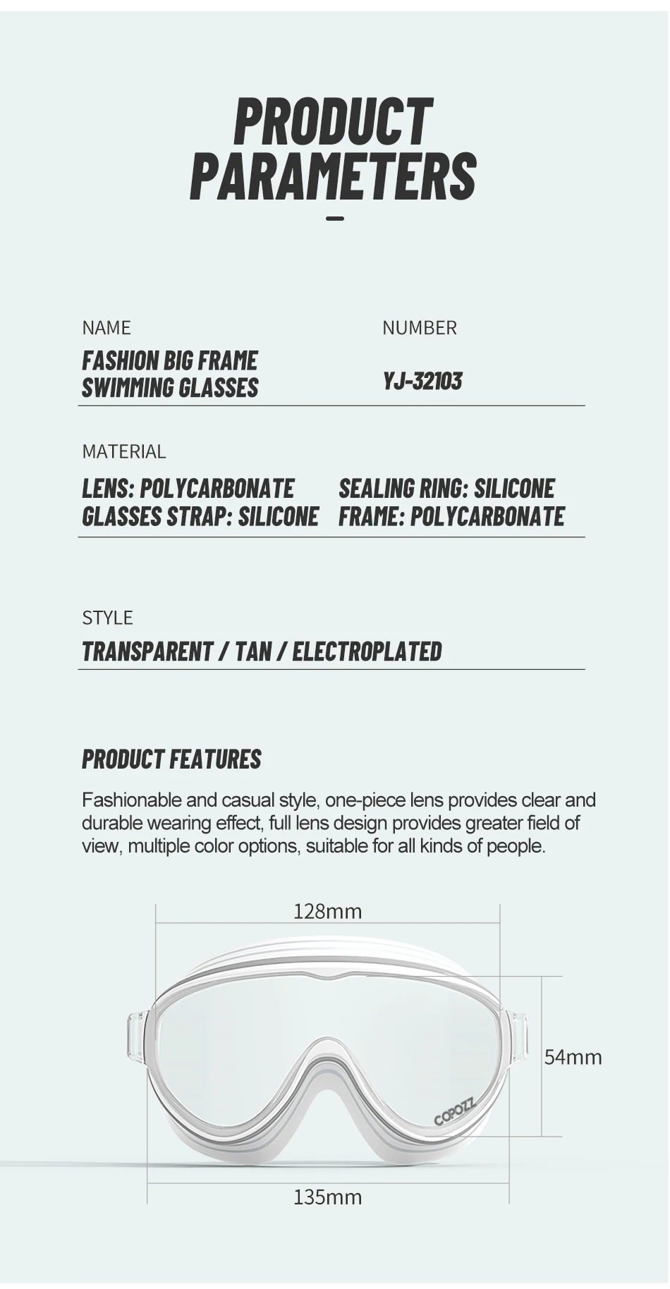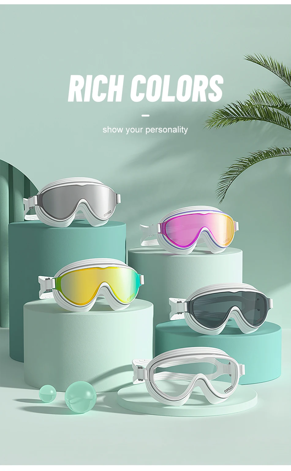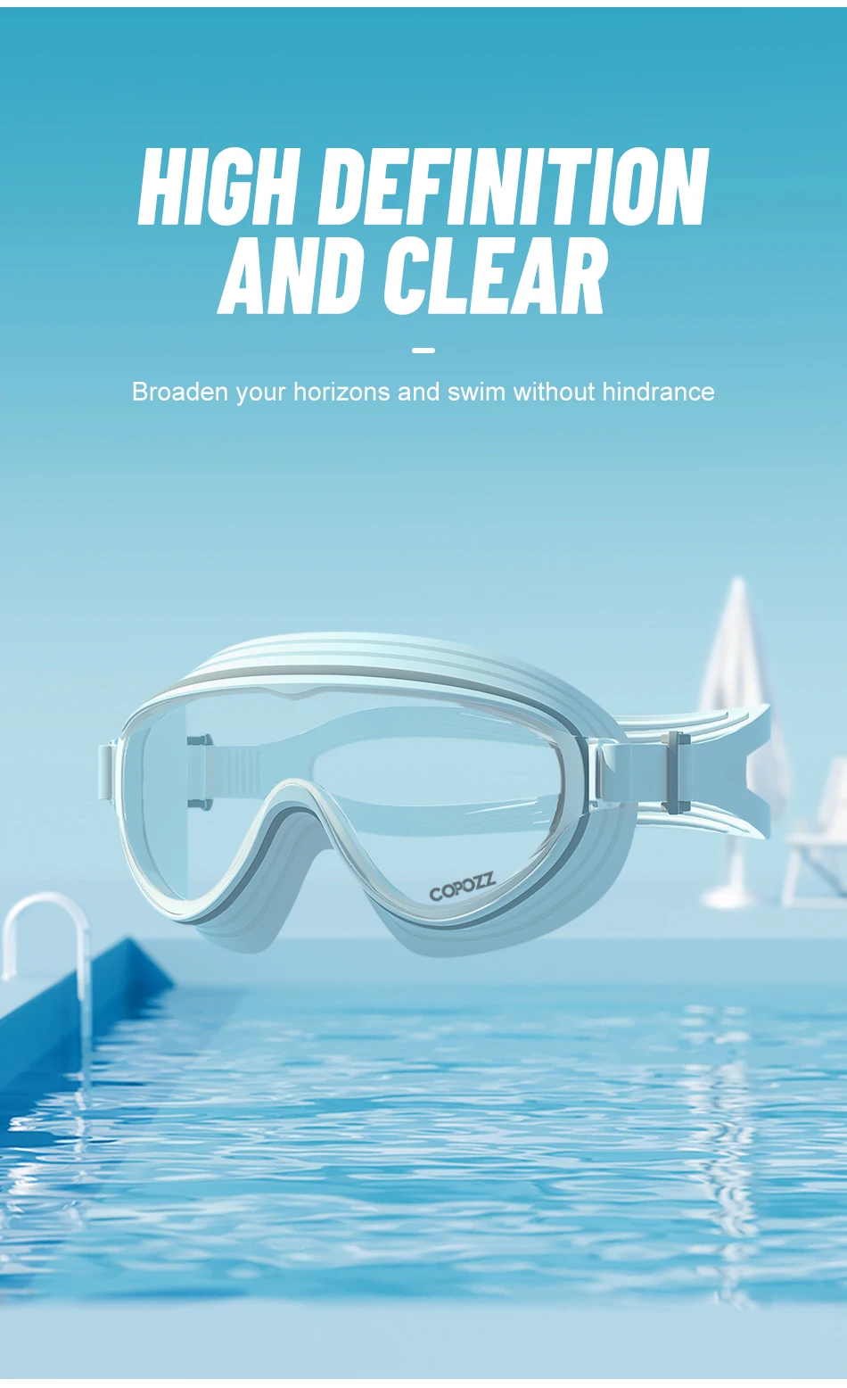 COPOZZ New Large Frame Adults Swimming Goggles Professional Plating Durable Anti Fog Comfort Eyewear Swimming Glasses Men Women