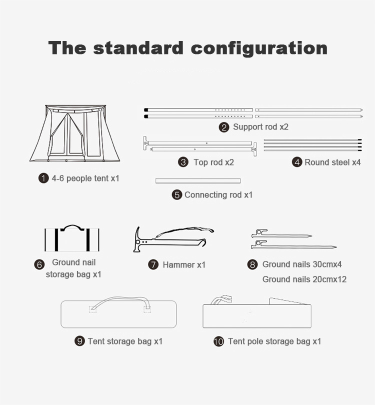 Cotton Picnic Tent for 4 Person, Outdoor Camping, TC, One Bedroom, Luxury, Foldable, Custom Tent, Oxford, Spring
