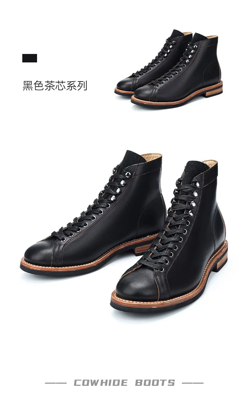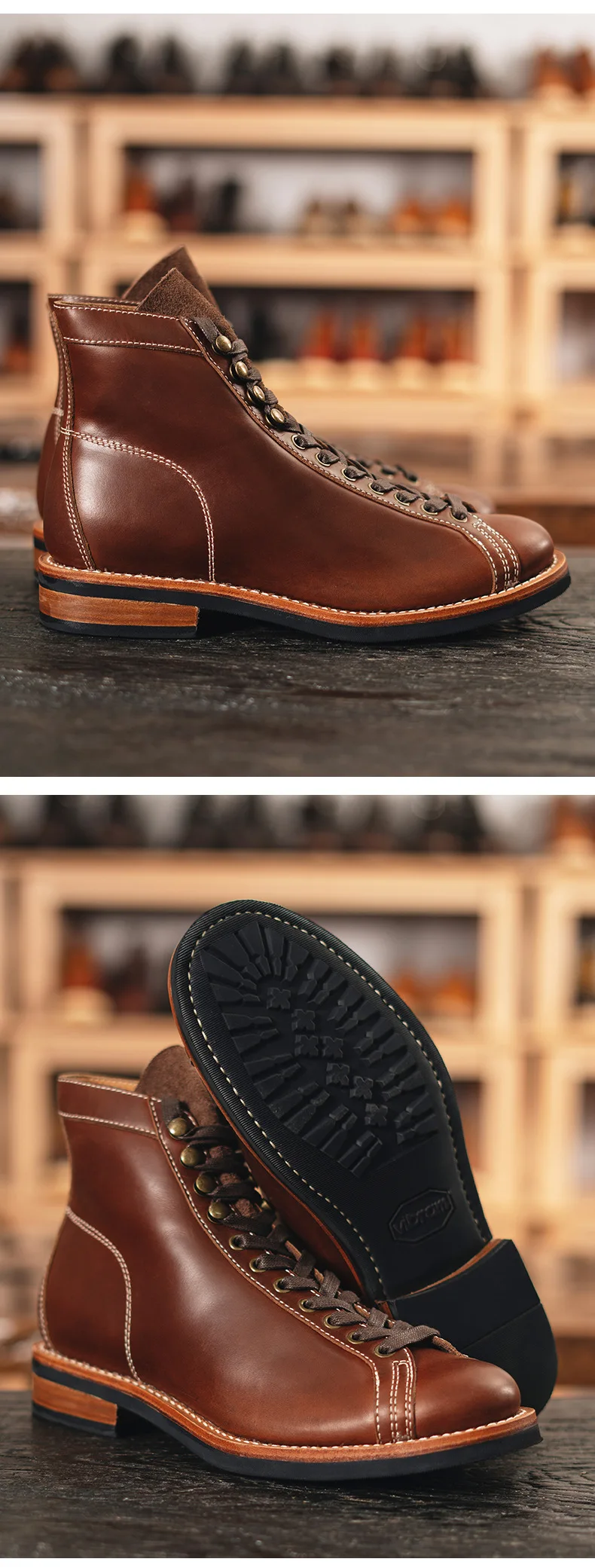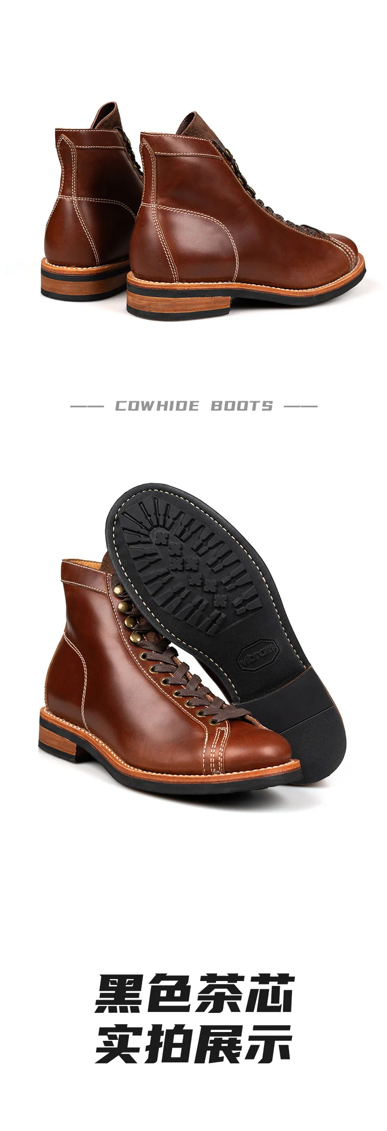 Cowhide High Top Motorcycle Boots Vintage Men Moto Ankle Boots Motocross Thick Soled Riding Boots Walking Shoes Moto Equipment