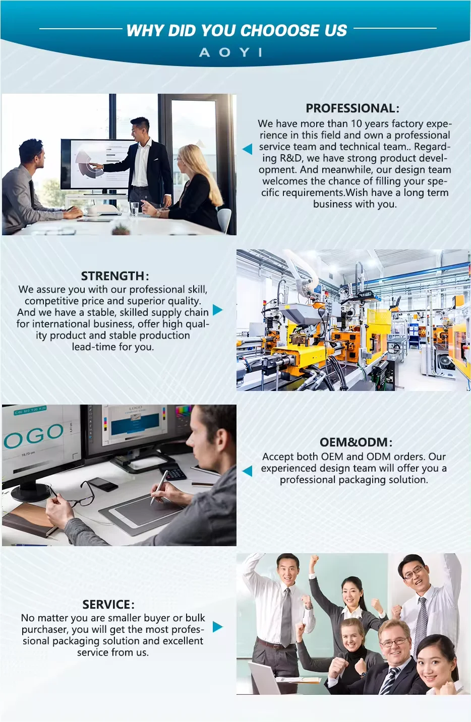 A: Yes, we can make customized packing as client's requirement. Custom polybag with warning text, gift box or display box is welcome.