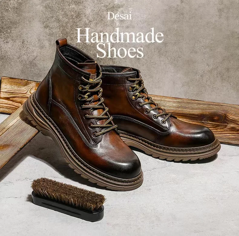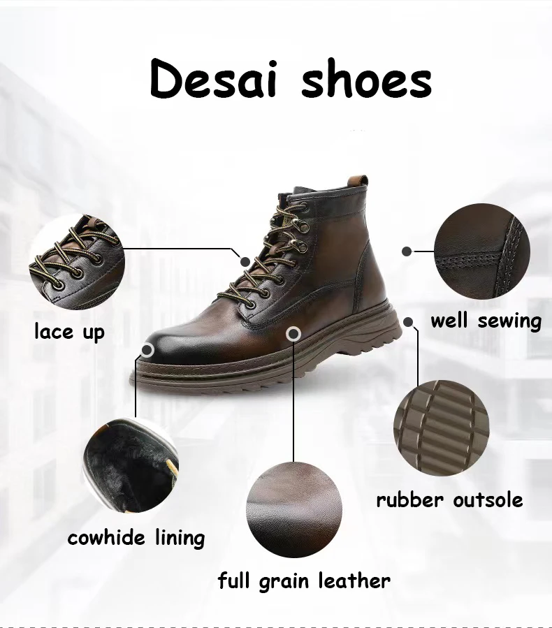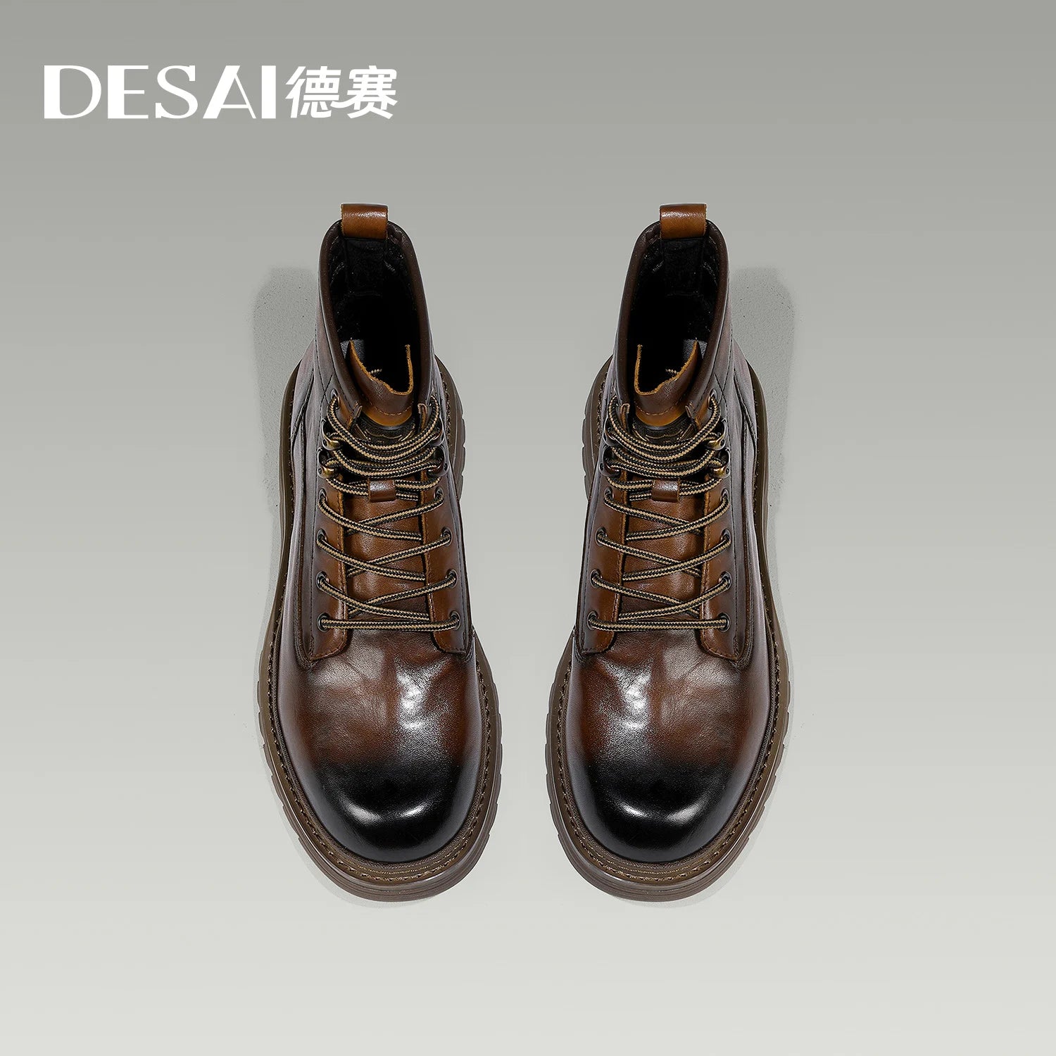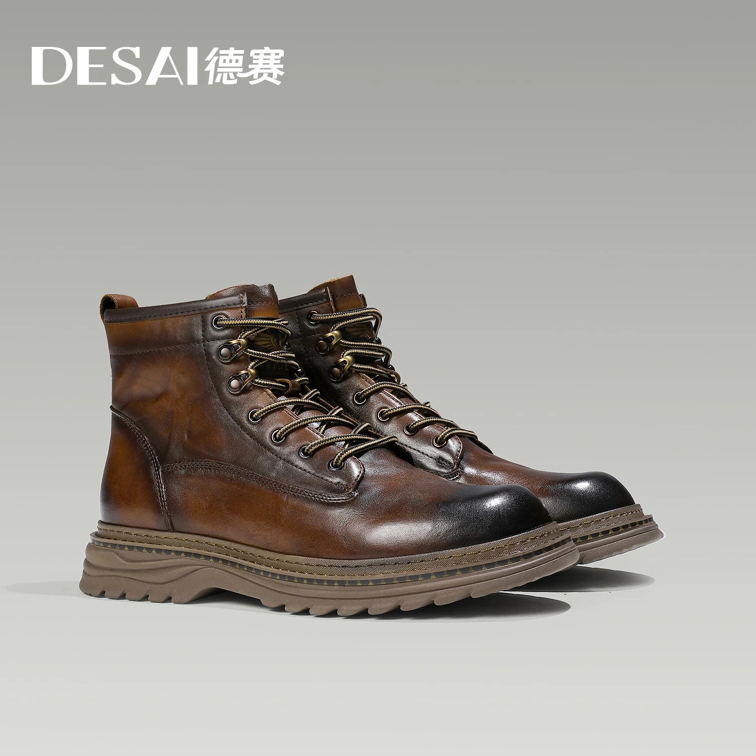 Desai Brand Men Boots Winter Cowboy Full Grain Genuine Leather Military Men Motorcycle Shoes Casual Work Fashion High Quality