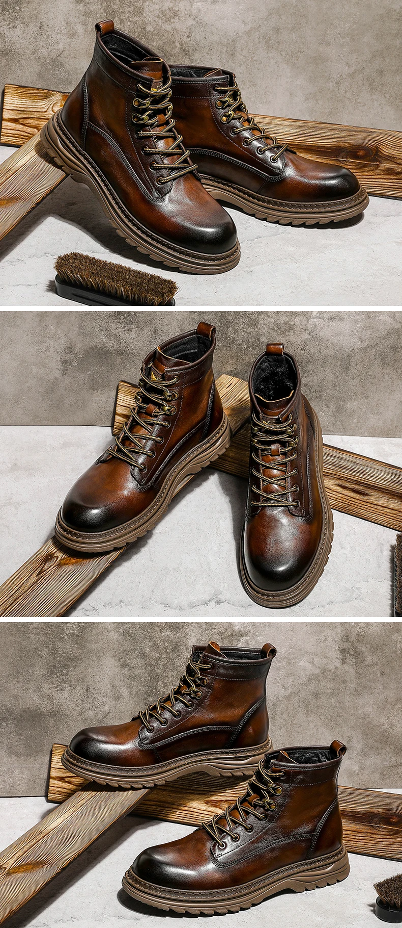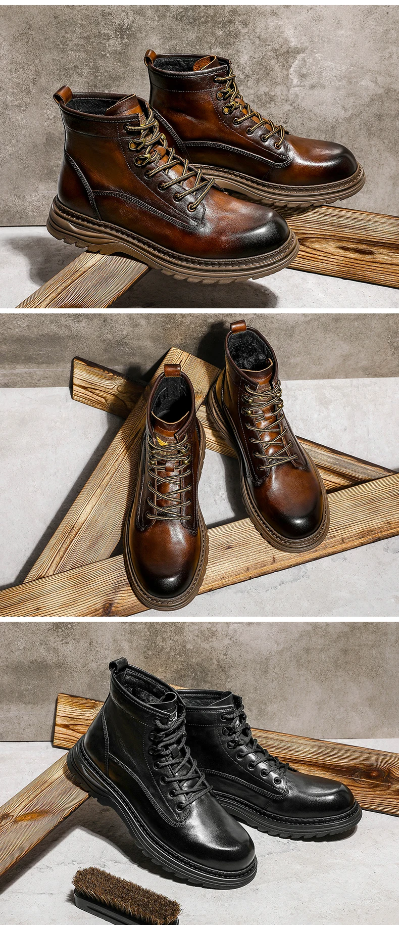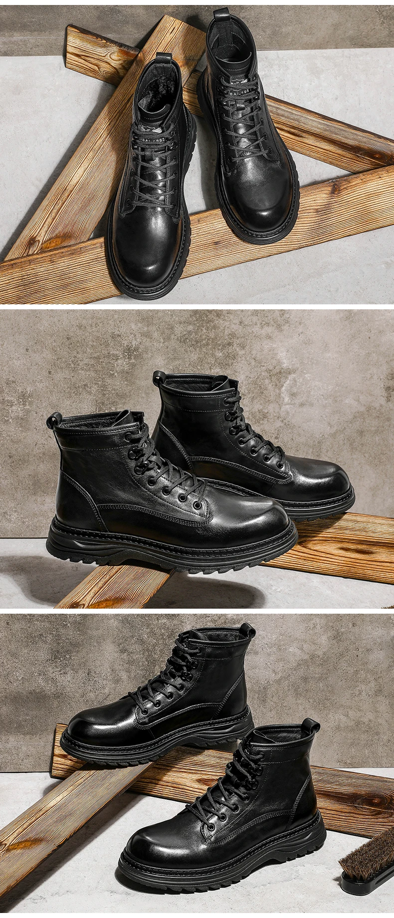 Desai Brand Men Boots Winter Cowboy Full Grain Genuine Leather Military Men Motorcycle Shoes Casual Work Fashion High Quality
