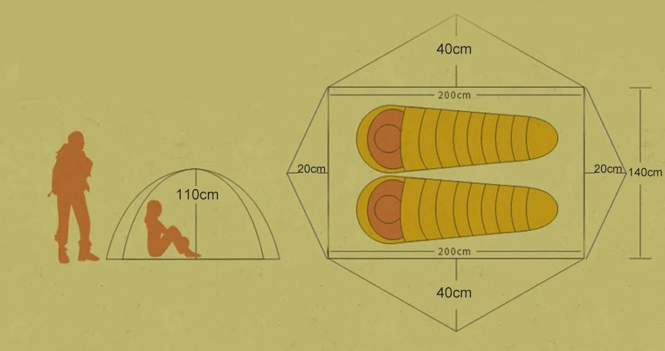 2. Lightweight camping tent, weight about 2.5kg(aluminum pole), 2.8kg(fiberglass pole), can put into backpack.