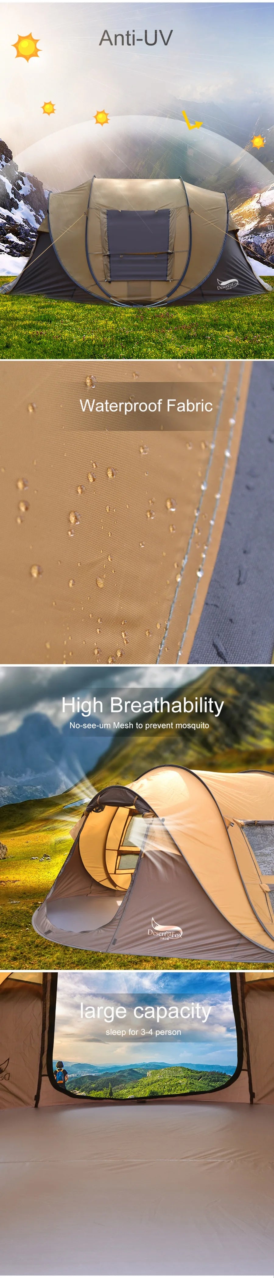 Desert&Fox Automatic Pop-up Tent, 3-4 Person Outdoor Instant Setup Tent 4 Season Waterproof Tent for Hiking, Camping, Travelling