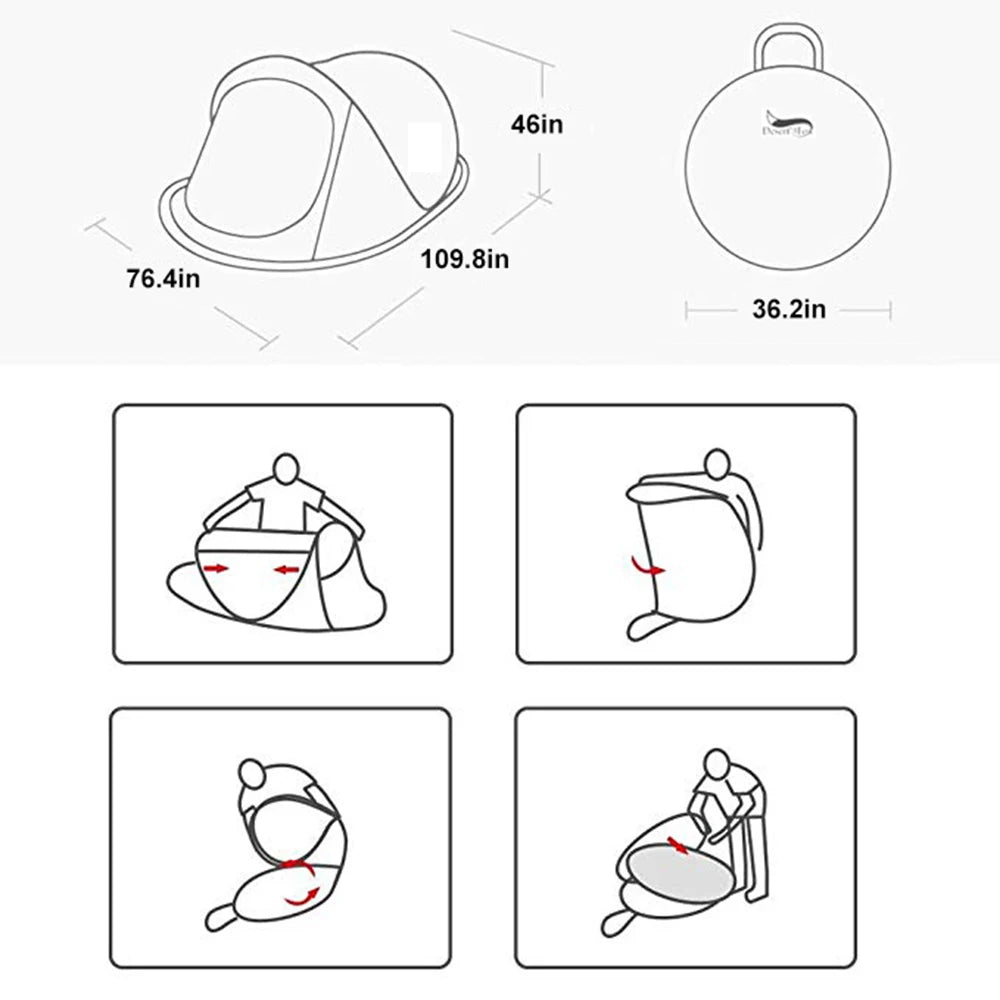 ➤Instant Setup Tent: Quick Automatic Opening Pop-up tent. Lift it up to complete build within 60 second. Press and fold tent frame can quickly dismantle.