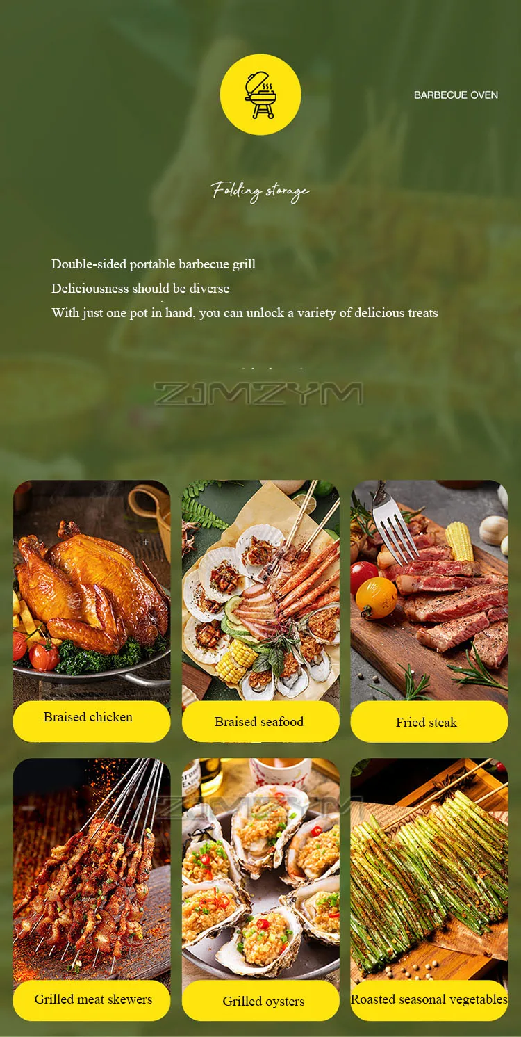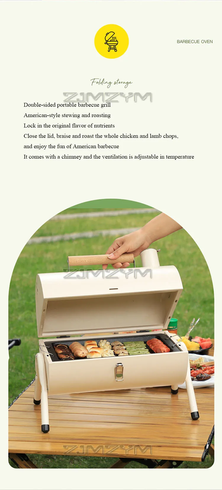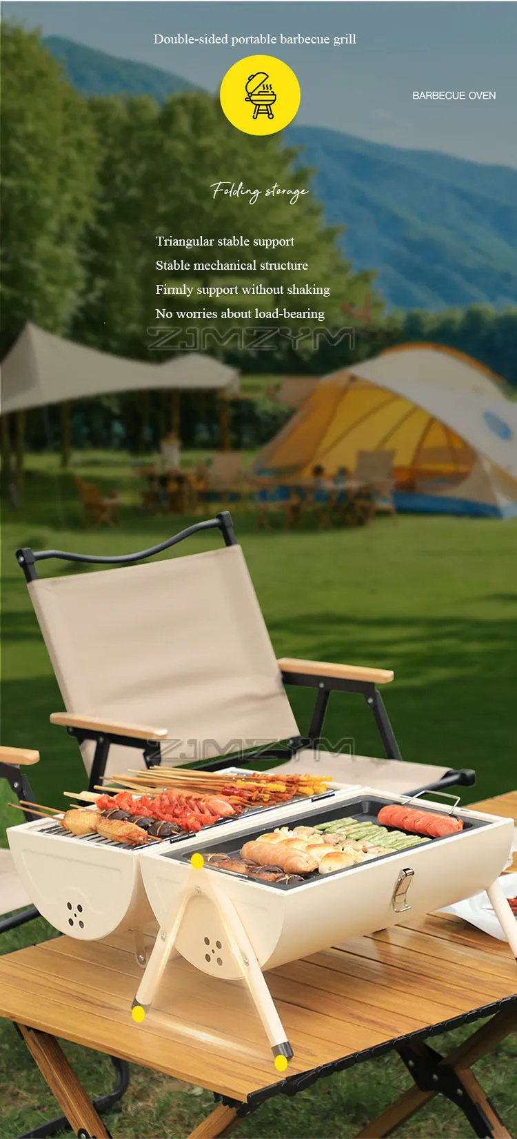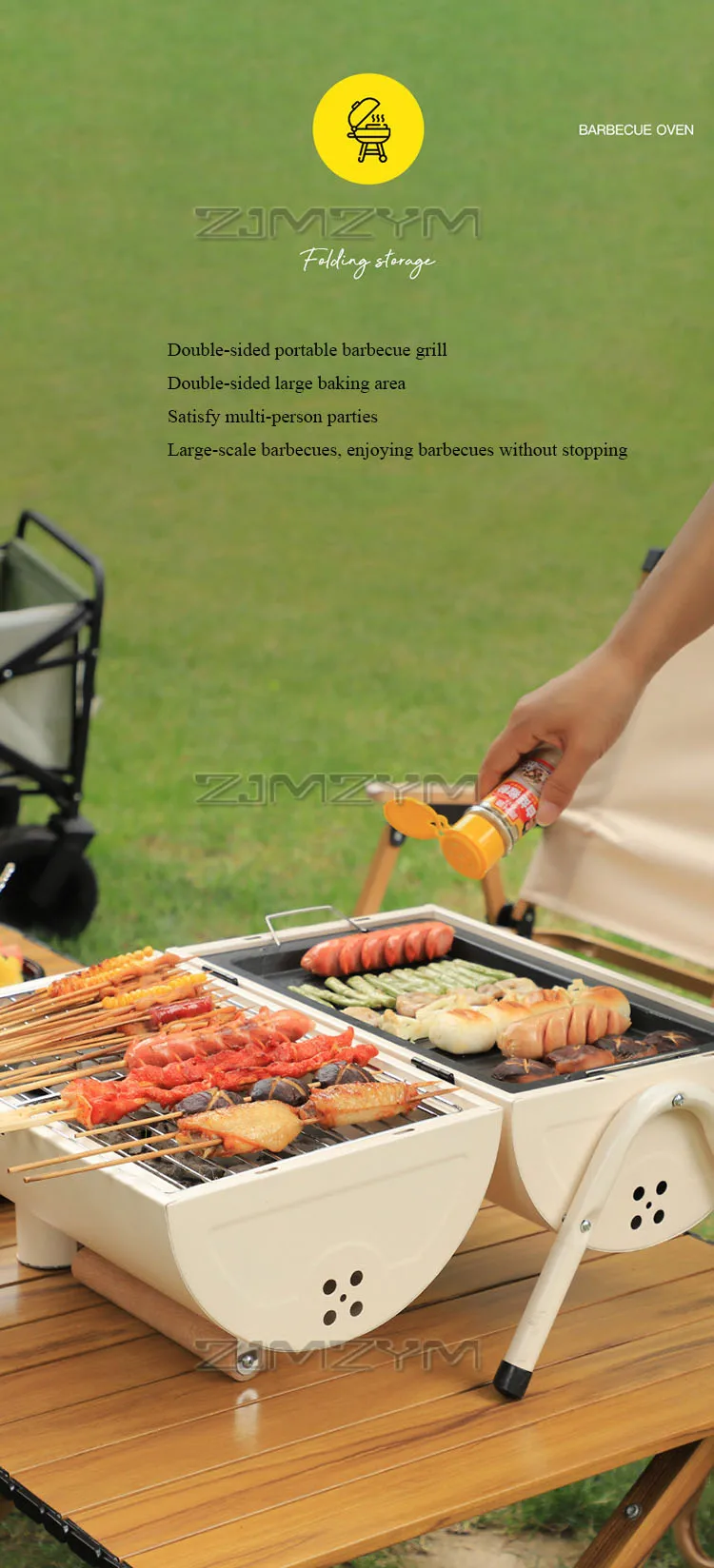 Double Sided Charcoal Grill Multi-Functional Portable Outdoor BBQ Grill Roasted Fried Chimney Stove For Cooking Camping Picnics