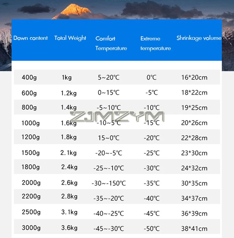 Sleeping Bag Temperature Scale Category: Winter Sleeping Bag