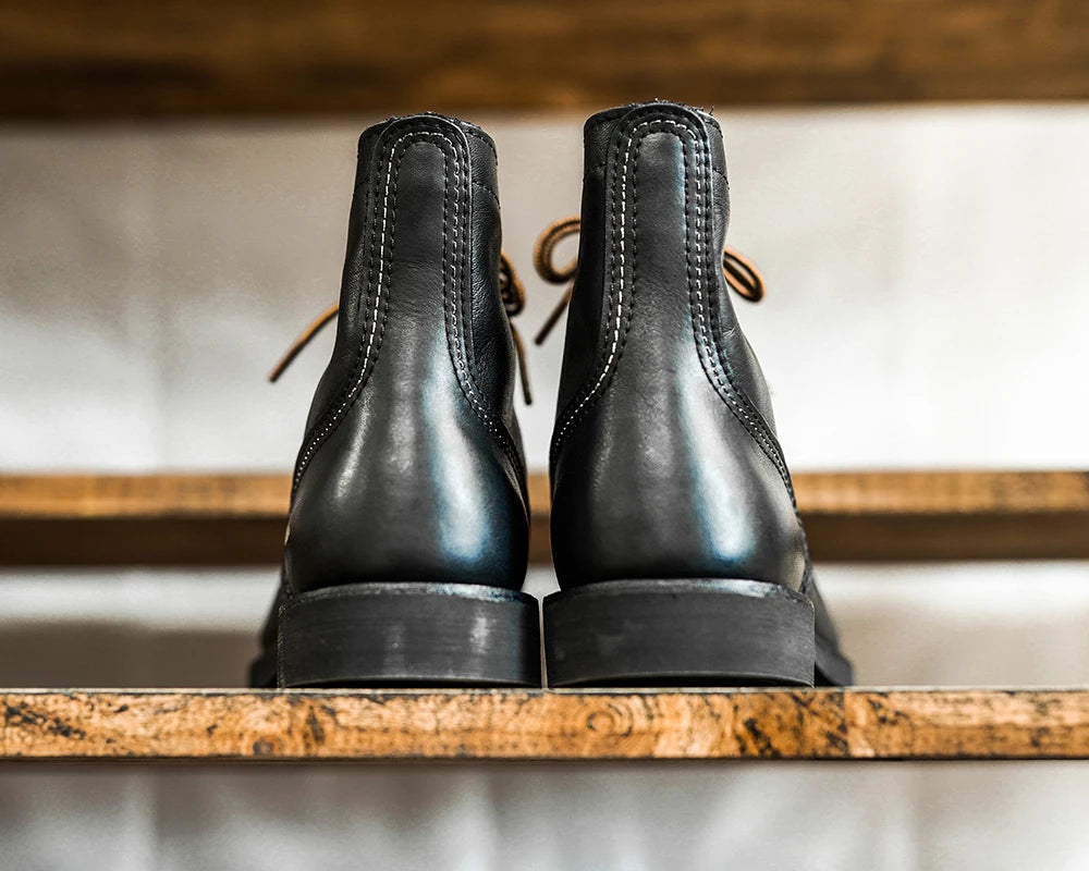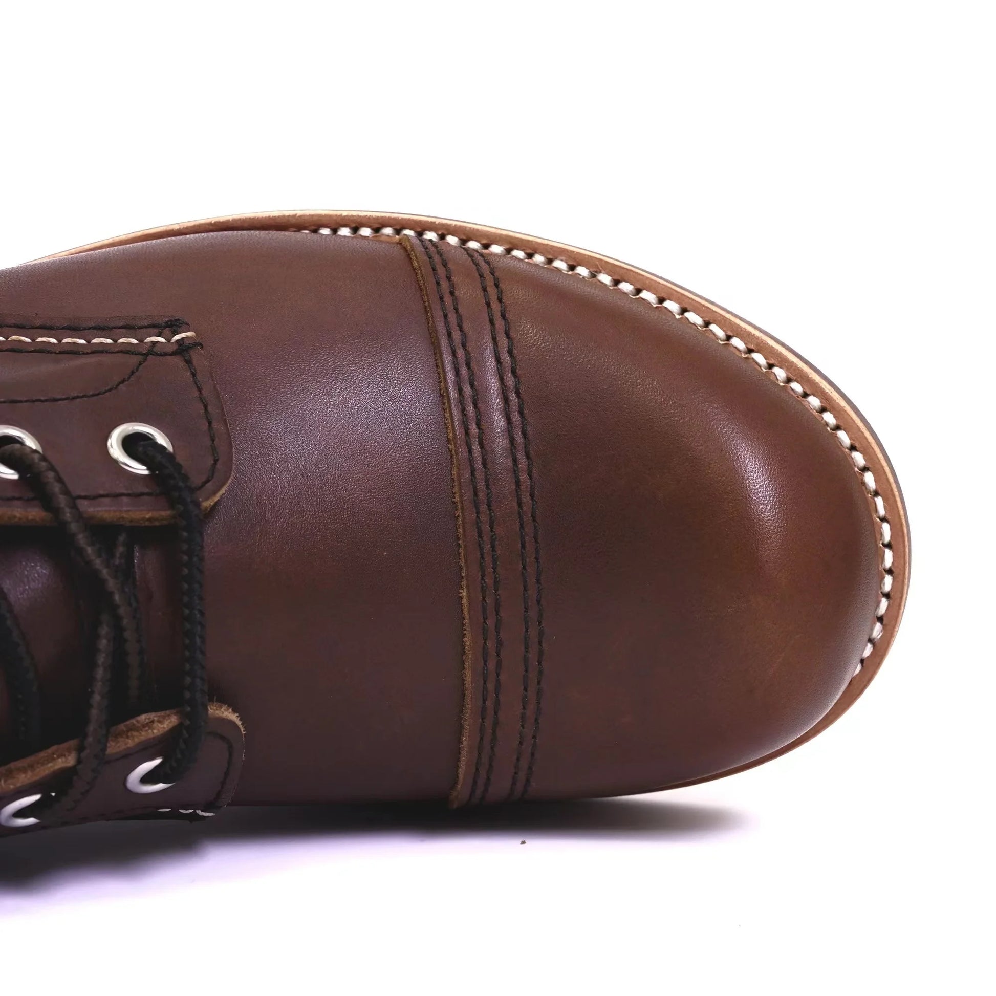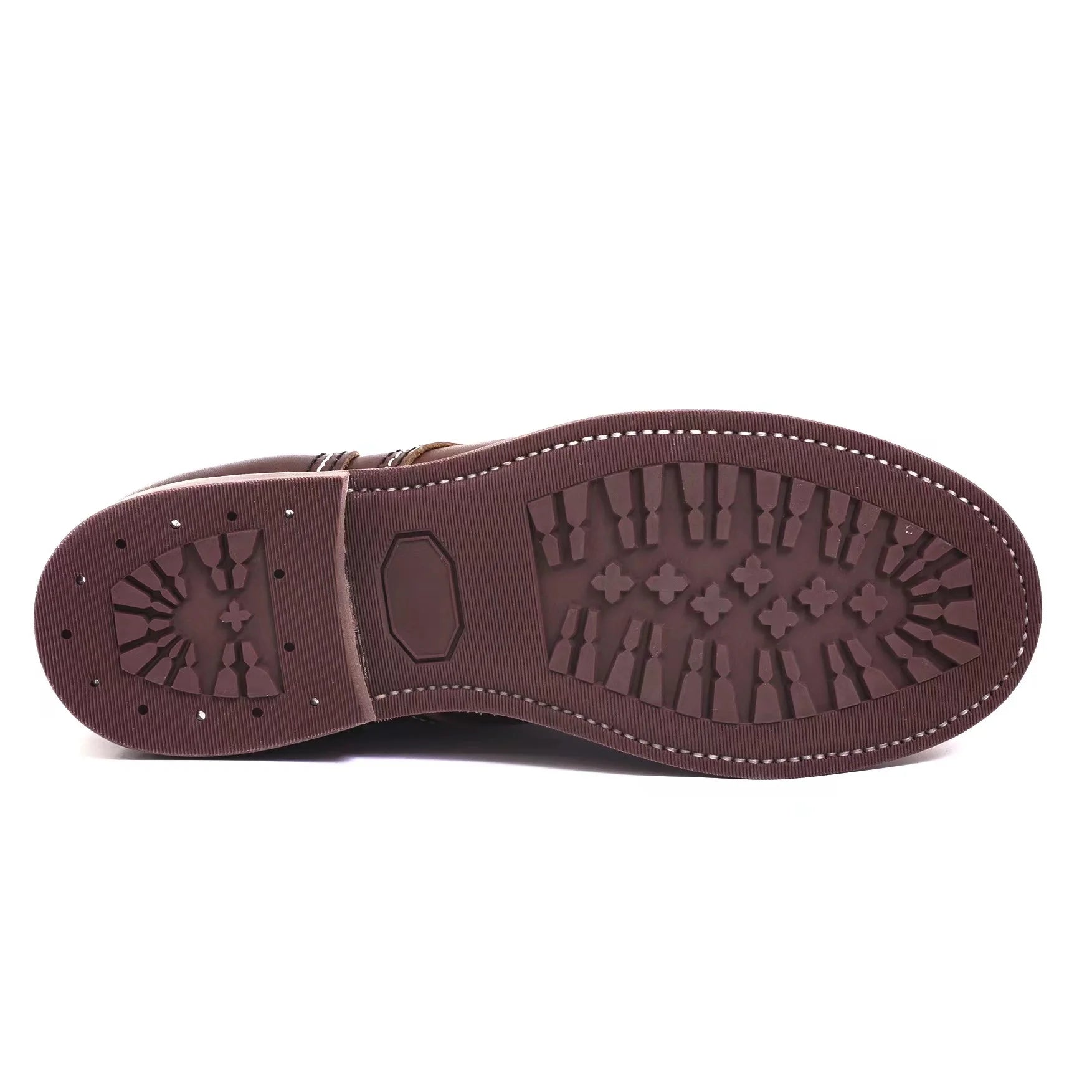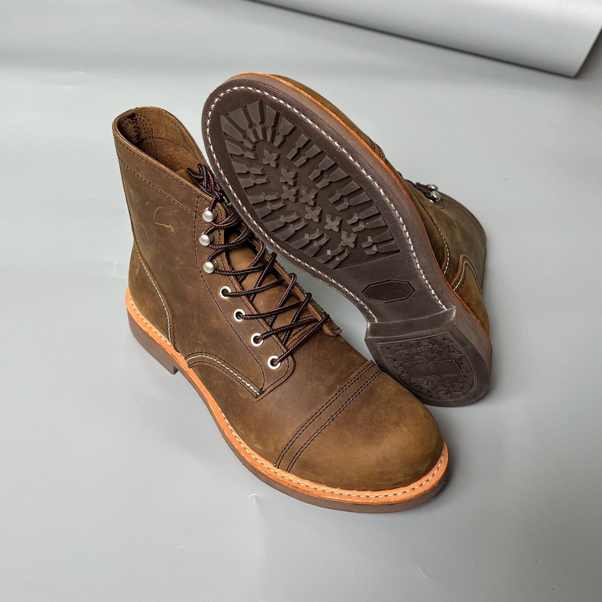 Durable Goodyear-Welted Motorcycle Rugged Heritage Boots Vintage Oil Genuine Leather 8111 Red Punk For Men Cowhide Mid-Cut Shoes