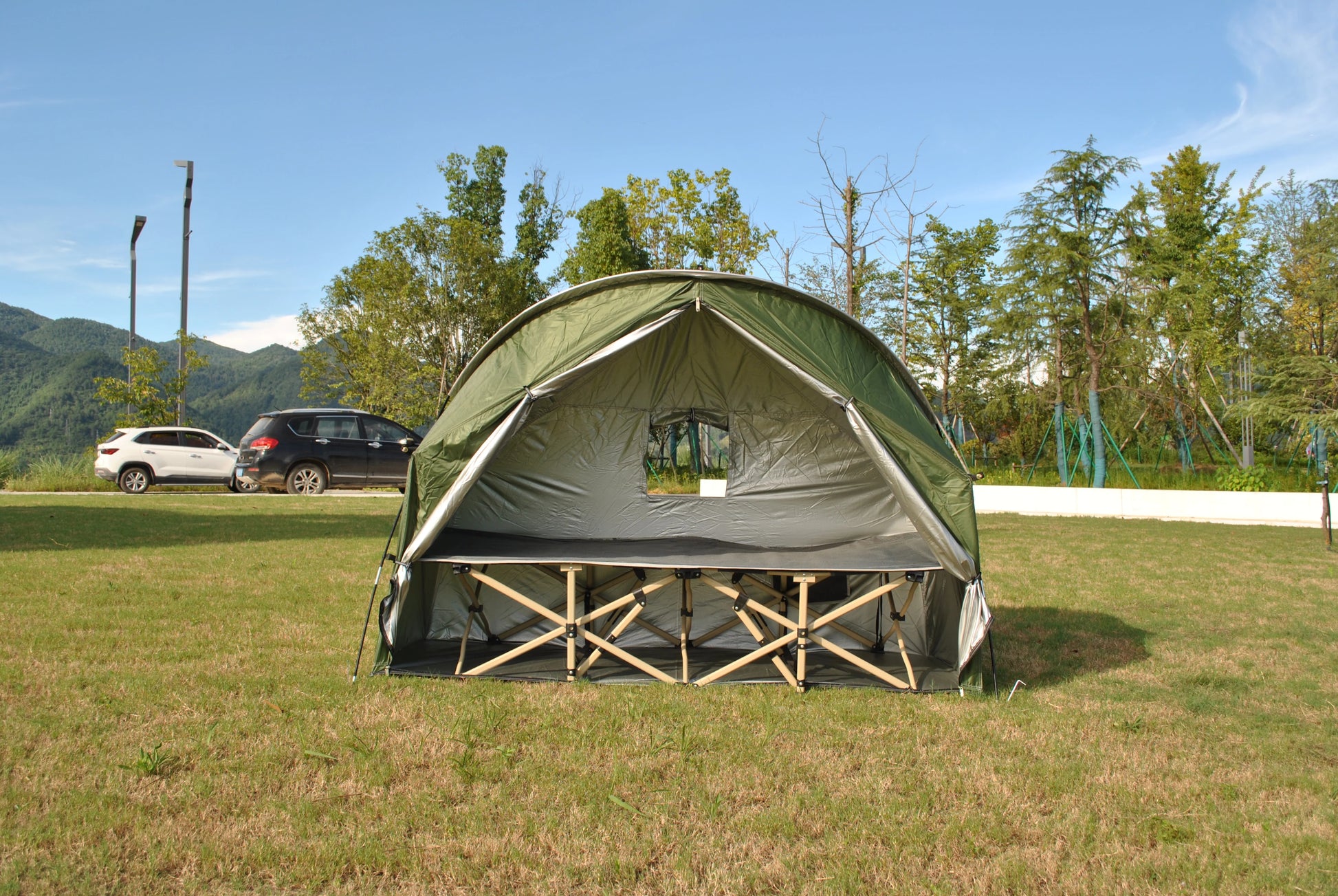 2.No more worrying about the elements – this design ensures your tent stays steadfast, providing unwavering support. 3.From bikes to beach chairs, this tent does it all. Embrace the versatility of its spacious interior.