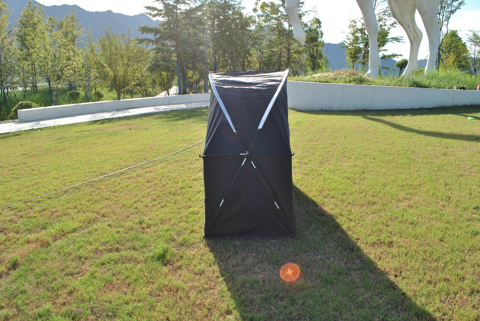 1.Our storage tent boasts a cross-pole design that stands as a testament to strength and durability.