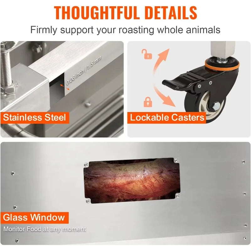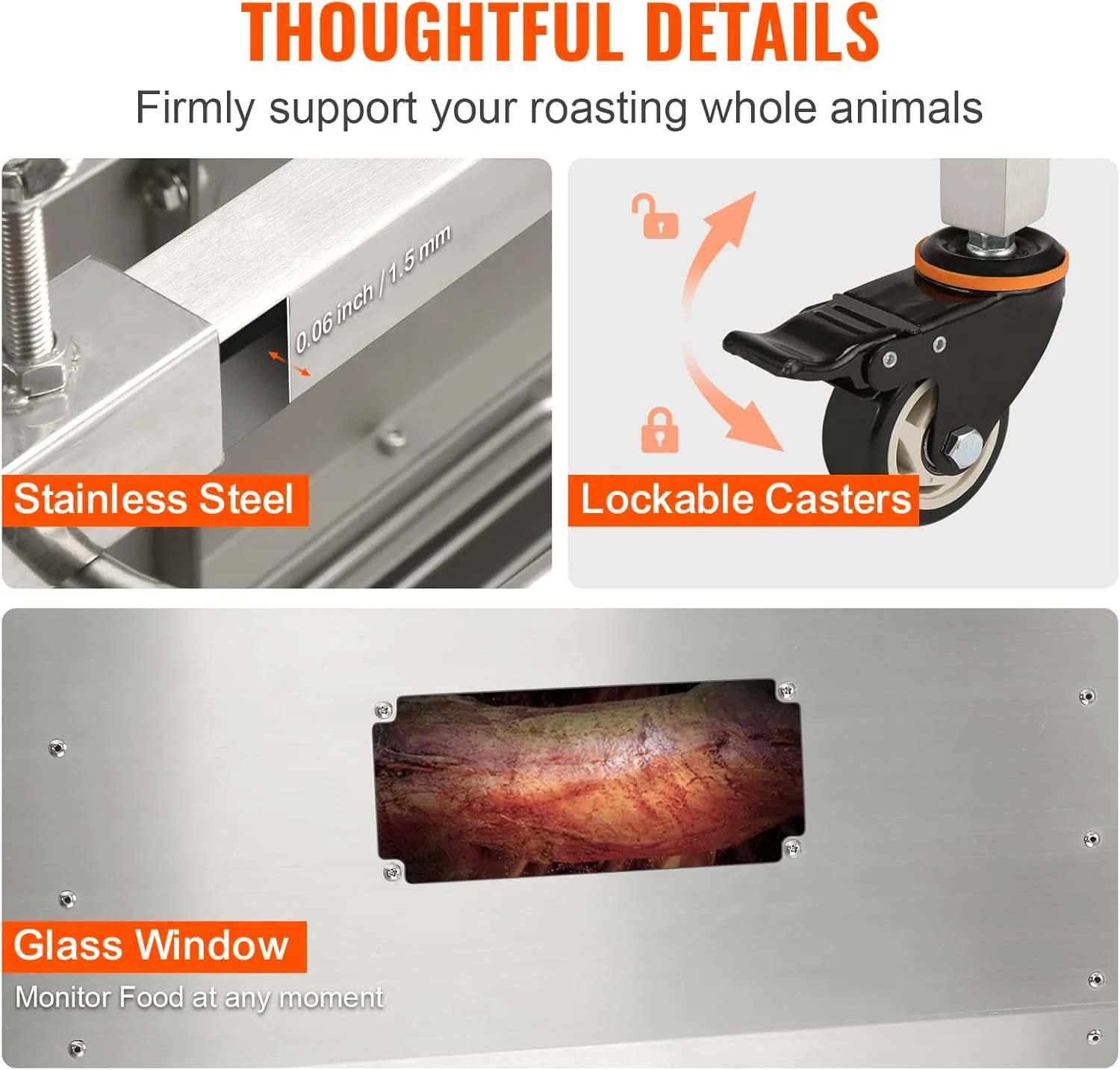 Electric Commercial Charcoal BBQ,Barbecue Grill Outdoor Stainless Steel Charcoal BBQ with Cover
