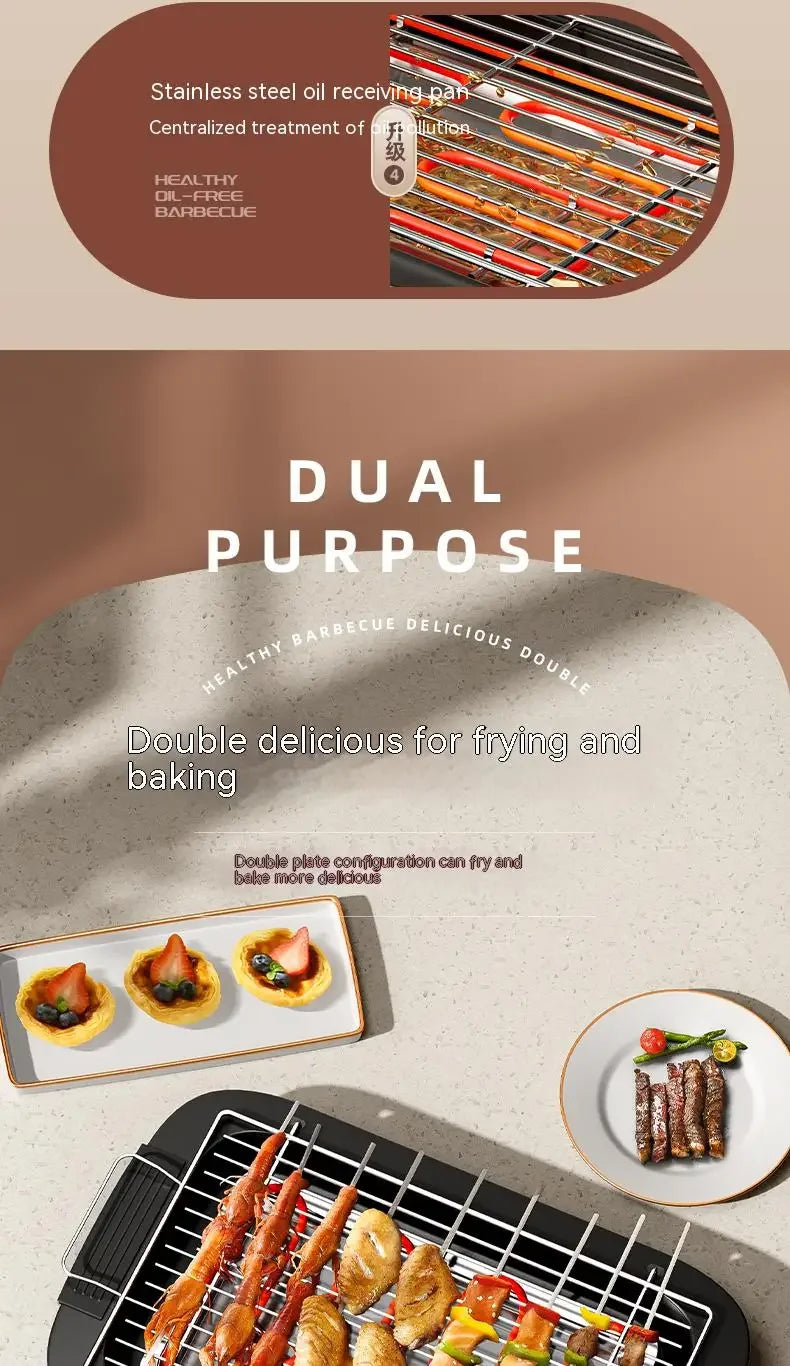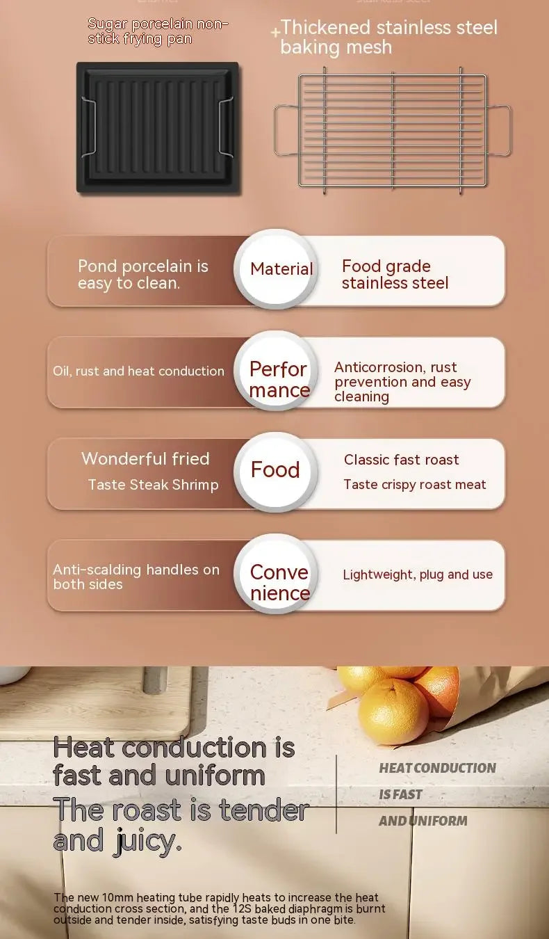 Electric Grill Indoor Smokeless Portable Food Barbecue Grill Smokeless Household Barbecue Grill Barbecue Skewers Portable Stove
