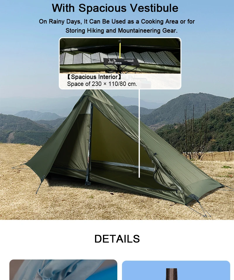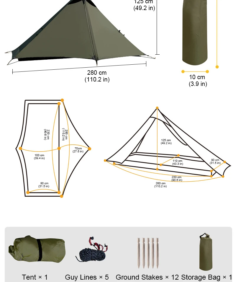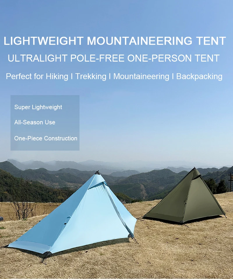 ①Simple design, ultra-lightweight 1kg, universal for all seasons, one-piece design, ultra-lightweight poleless single-person tent, suitable for hiking/camping/mountaineering/backpacking