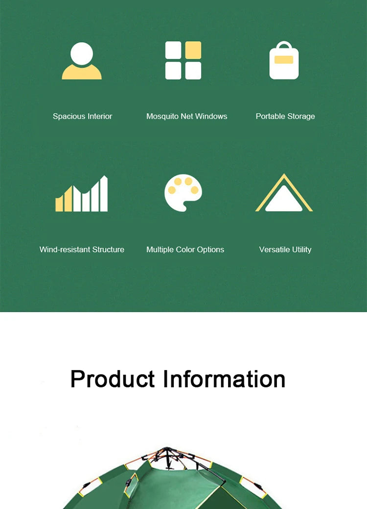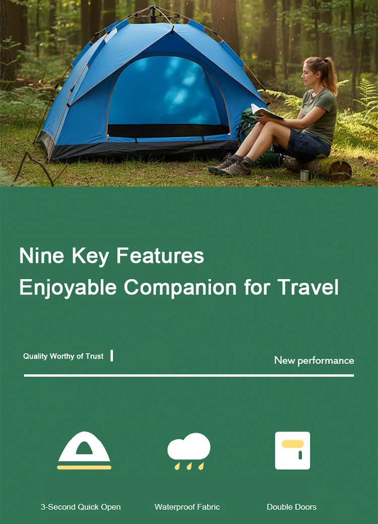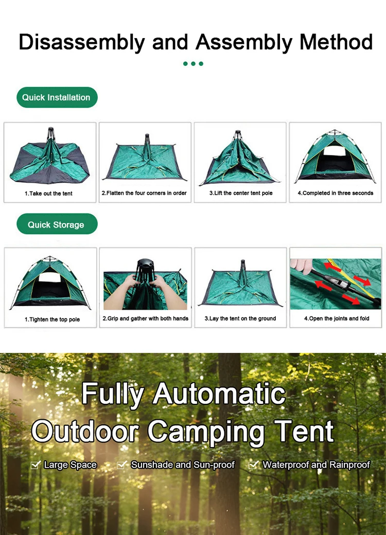 ①High-value, large space, automatic tent, upgraded 3-second quick opening bracket, can be operated with one hand, as simple as holding an umbrella