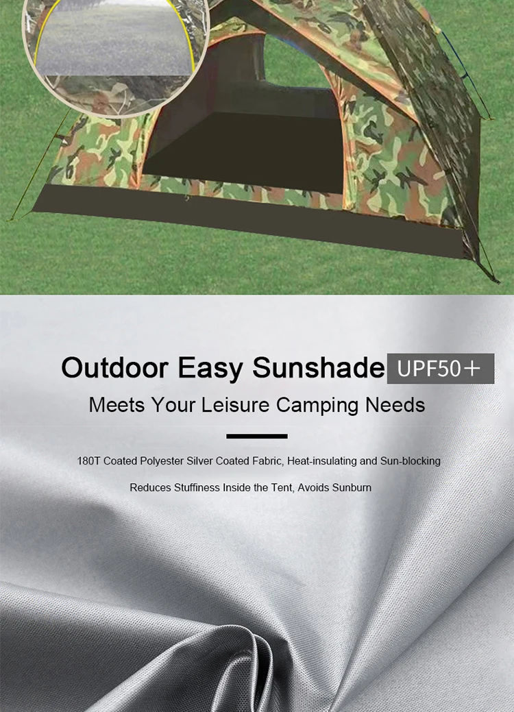 ④180T coated polyester silver tape, heat insulation and sun protection to reduce stuffiness in the tent and avoid sunburn