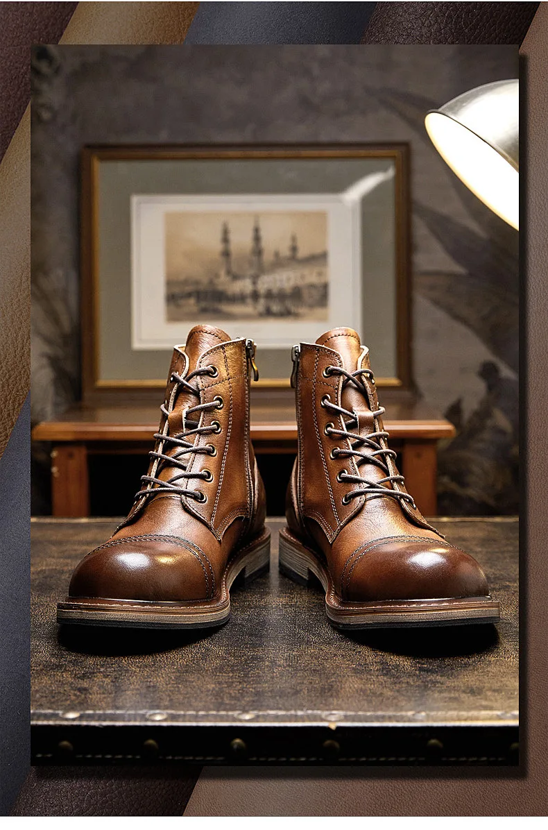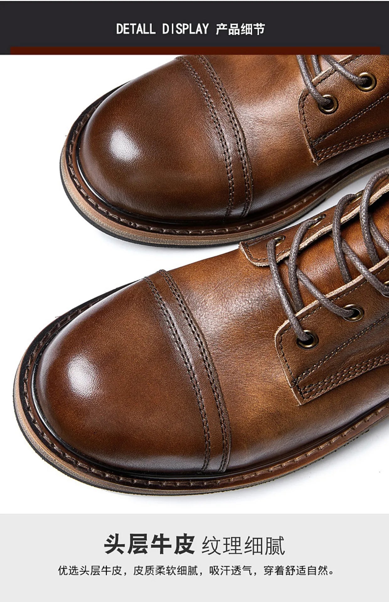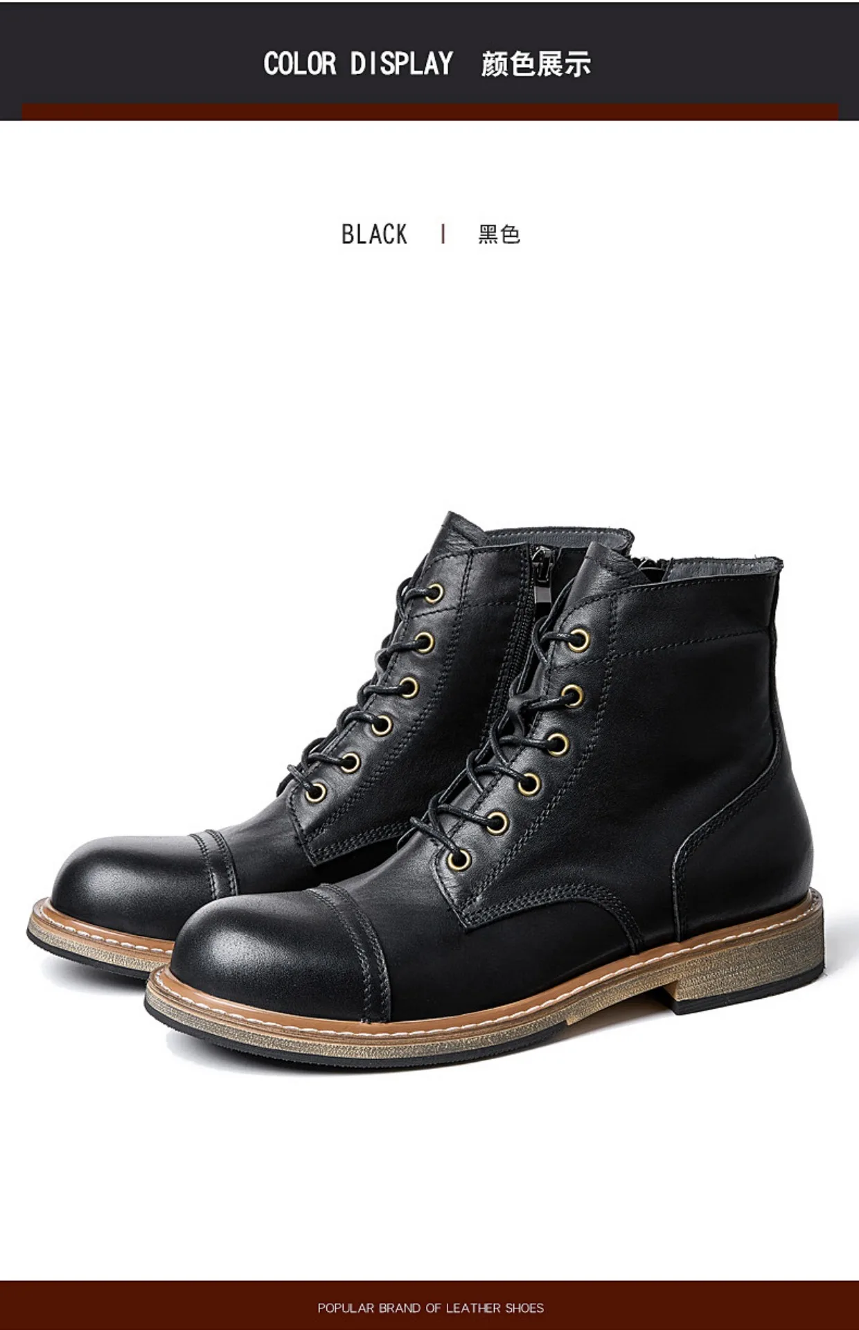 EU Size 38-44 Motorcycle Boots Men Cowhide Motorbike Ankle Boots Thick Soled High Top Western Work Boots Fashion Leather Shoes