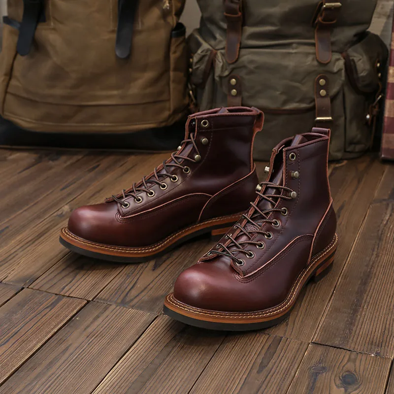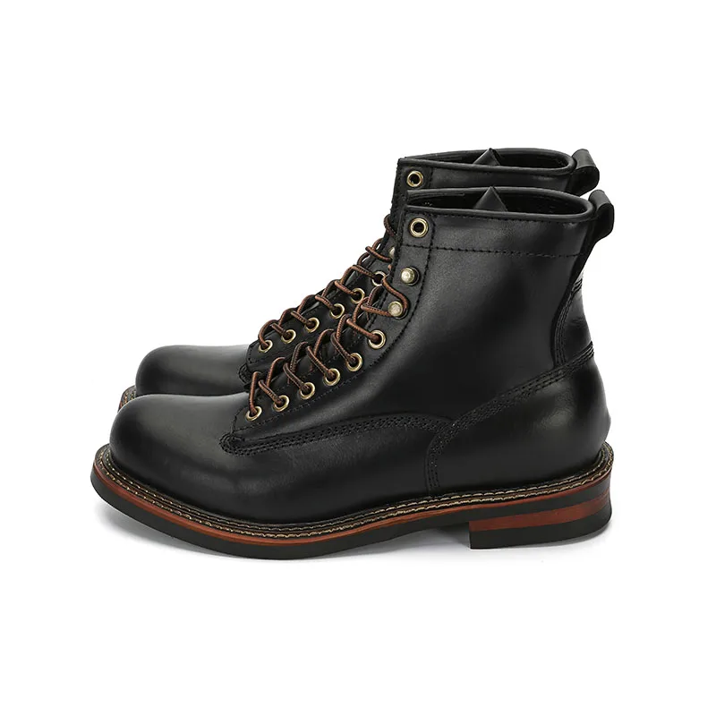 European Short-faced Leather Motorcycle Riding Boots Top Layer Cowhide Men's Autumn Winter British Trendy Outdoor Shoes Male