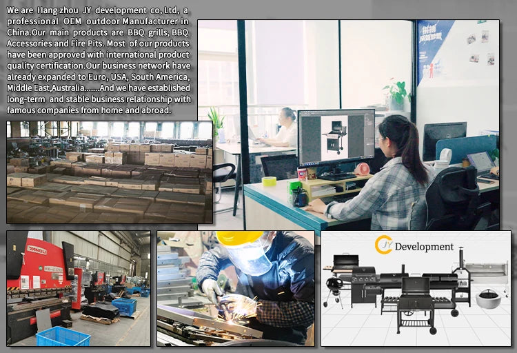 A:We have our own factory and the sales department is in trading company. The factory mainly designs and produces BBQ grills, BBQ accessories and Fire pits, at the peer in the leading level, through several years development, the enterprise already has a larger scale.