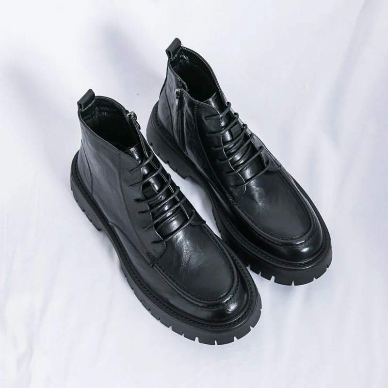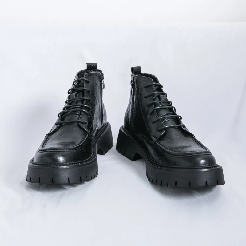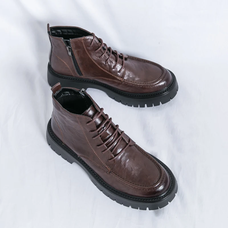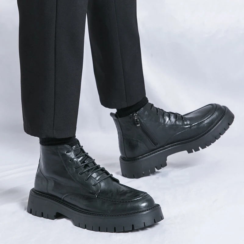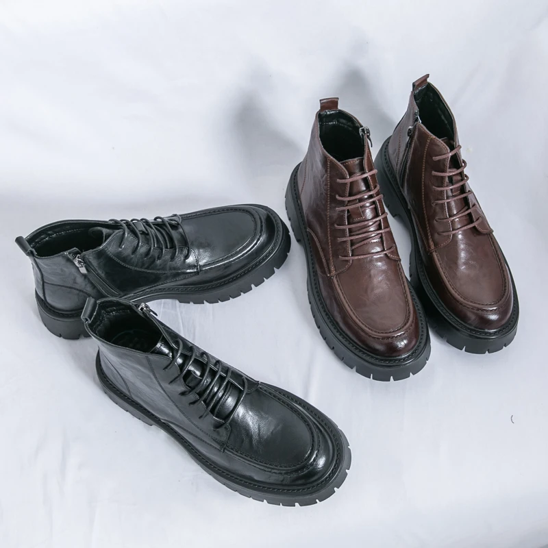 Fashion Men's Genuine Leather Casual Shoes Classic Outdoor Workwear Shoes Men's Motorcycle Boots Handsome Height Increasing