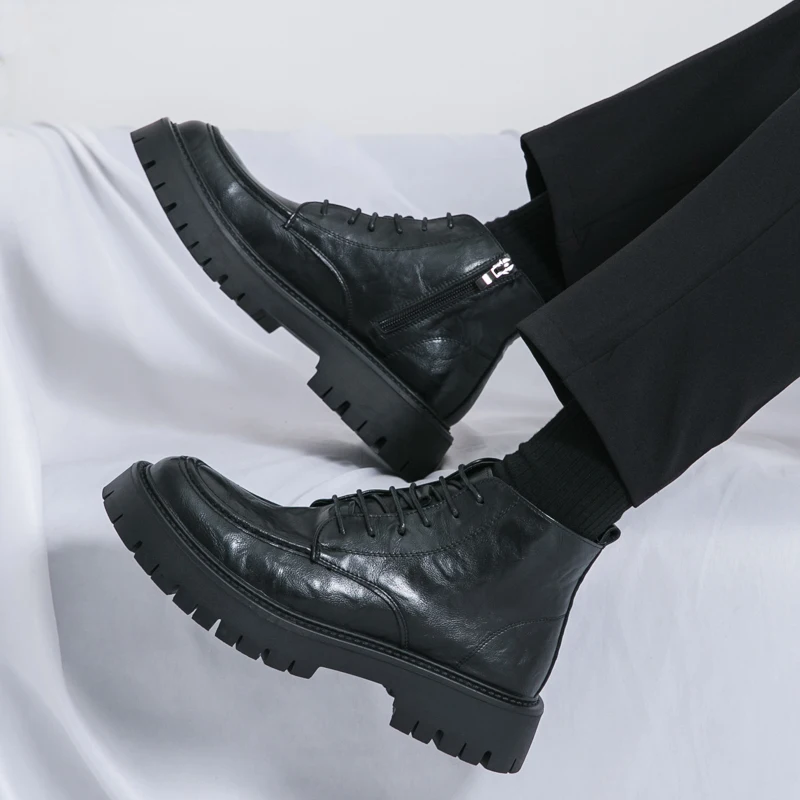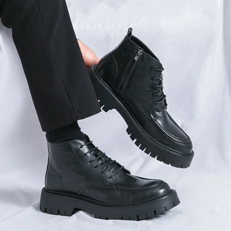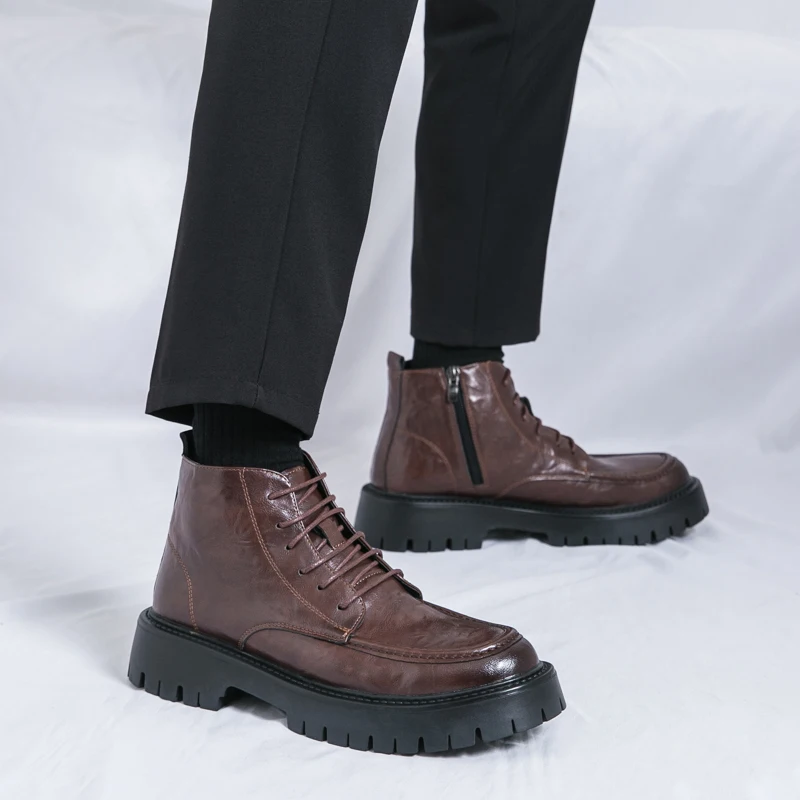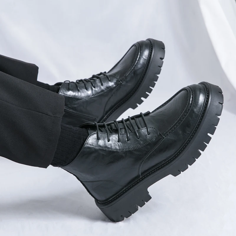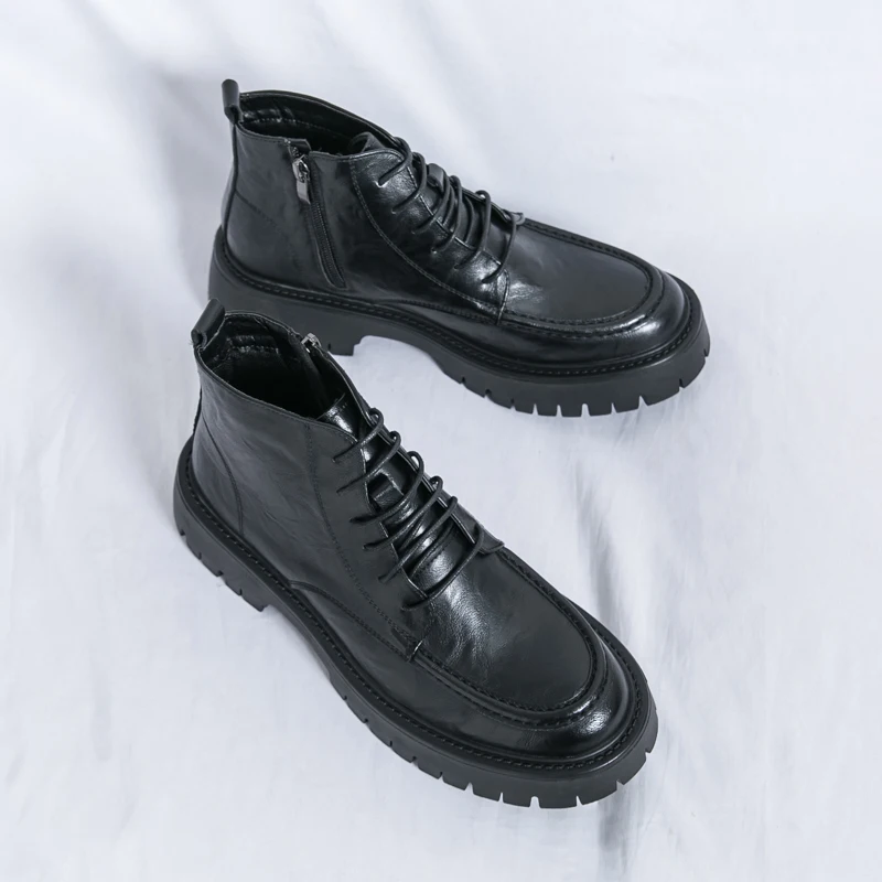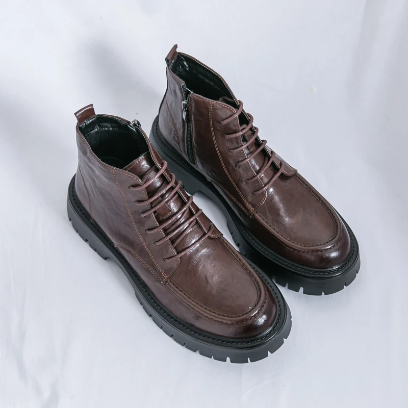 Fashion Men's Genuine Leather Casual Shoes Classic Outdoor Workwear Shoes Men's Motorcycle Boots Handsome Height Increasing