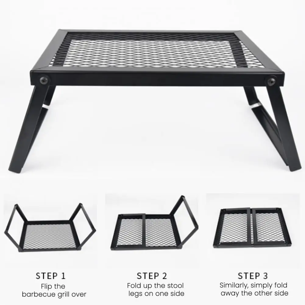 Folding Barbecue Rack Portable Folding Campfire Grill Grate Heavy Duty Steel Mesh Cooking Rack for Outdoor Bbq Picnic