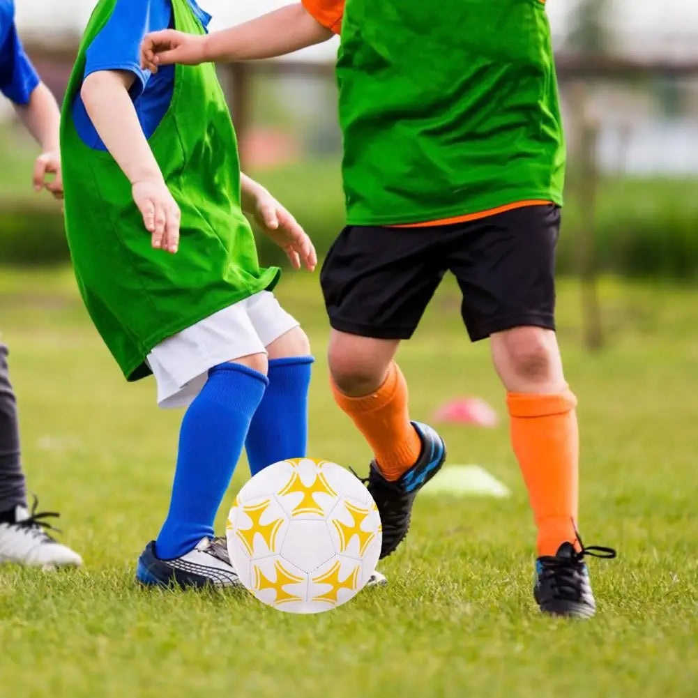 Durable PVC skin for strong and kick-resistant football, ensuring good stability on various playing surfaces.