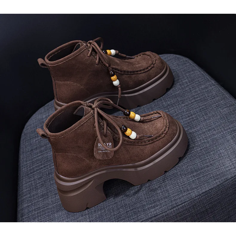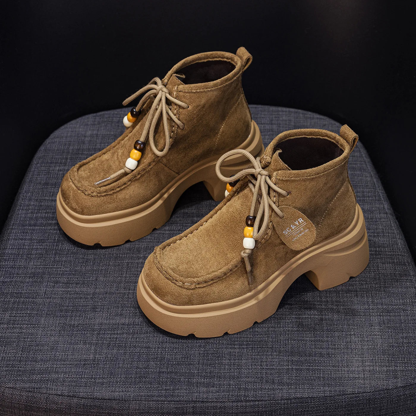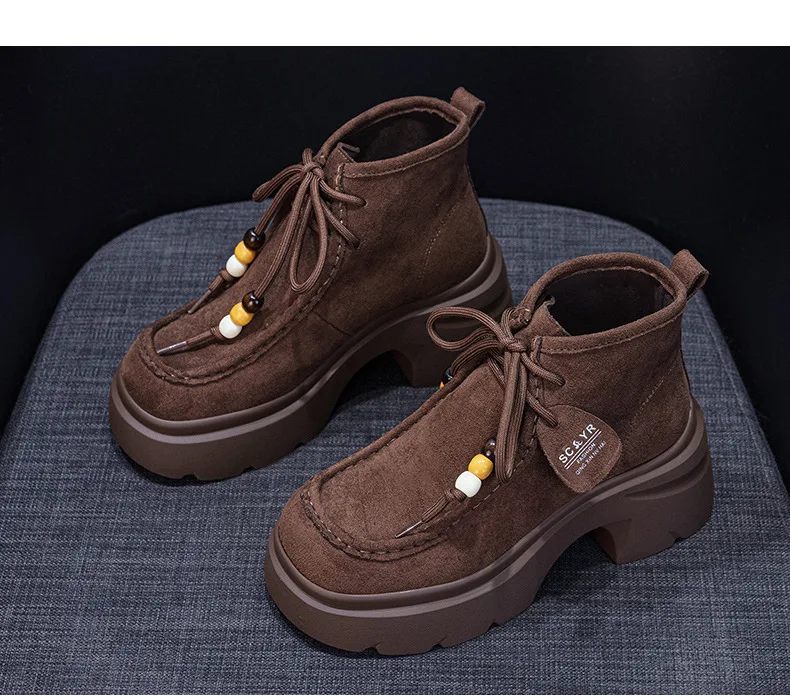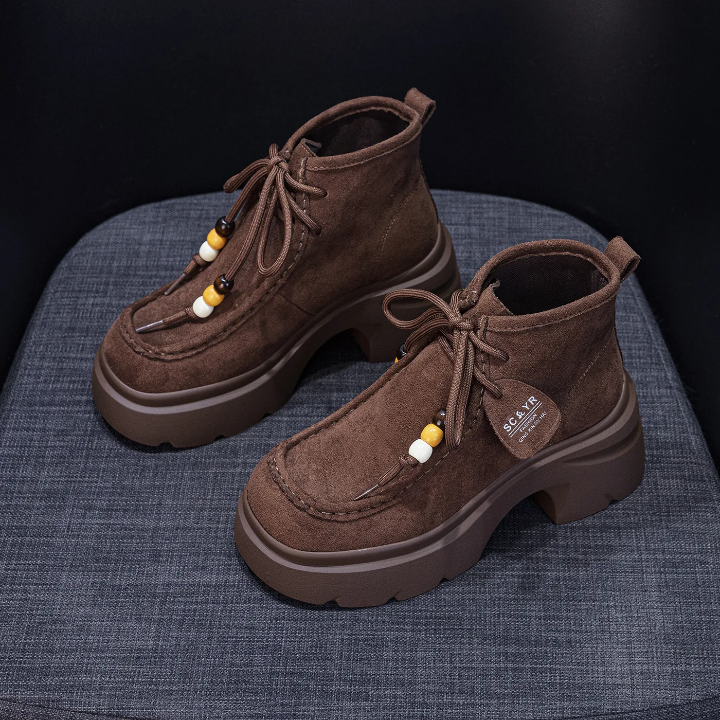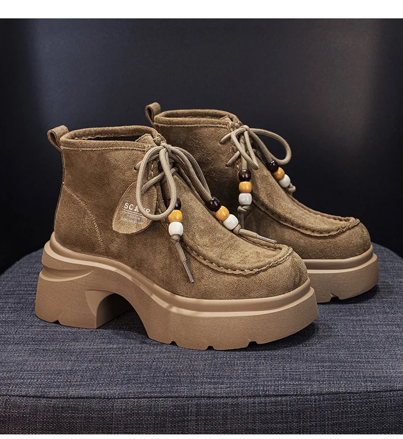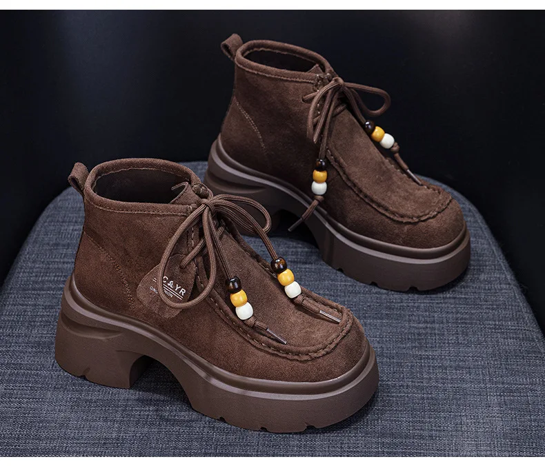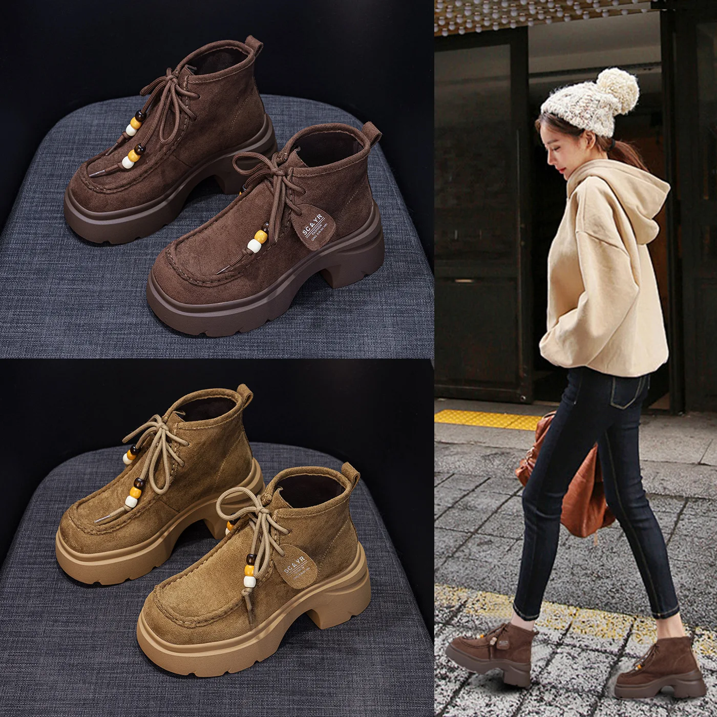 Fujin 8cm Platform Boots for Women Ankle Boots Fall Winter Riding Motorcycle Fashion Shoes Booties Short Boots Genuine Leather