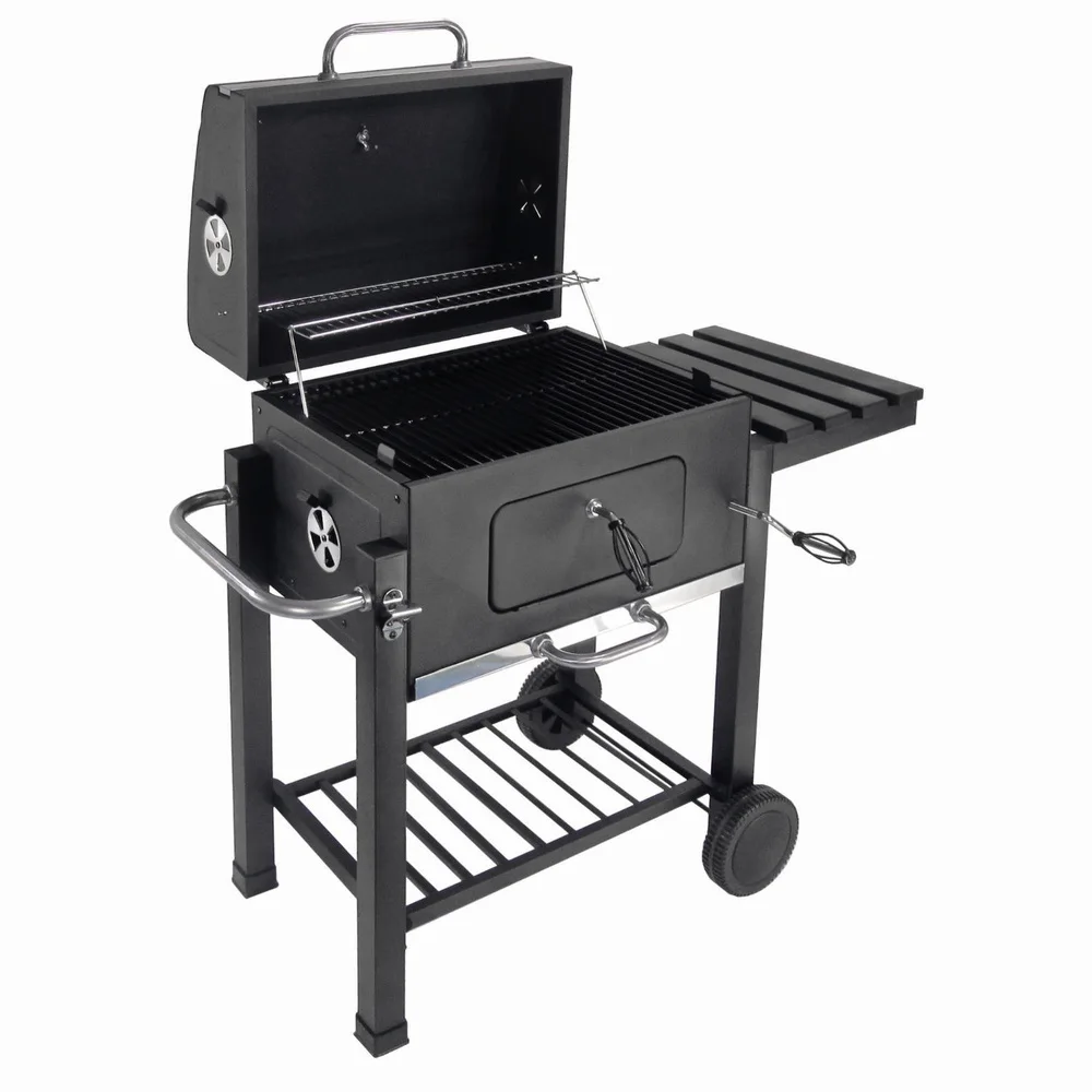 Garden Backyard Classic Charcoal BBQ Grills Large Cooking Area BBQ Party Square BBQ Grill with Trolley