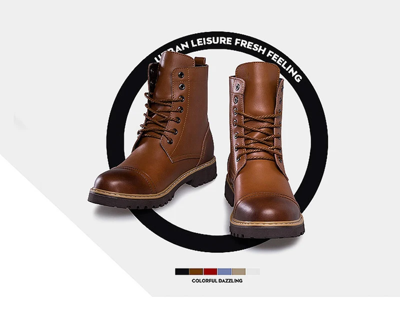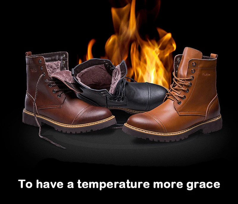 Genuine Leather Men's Boots Plush Warm Winter Boots High Quality Men Motorcycle Boots Fashion Tooling Shoes