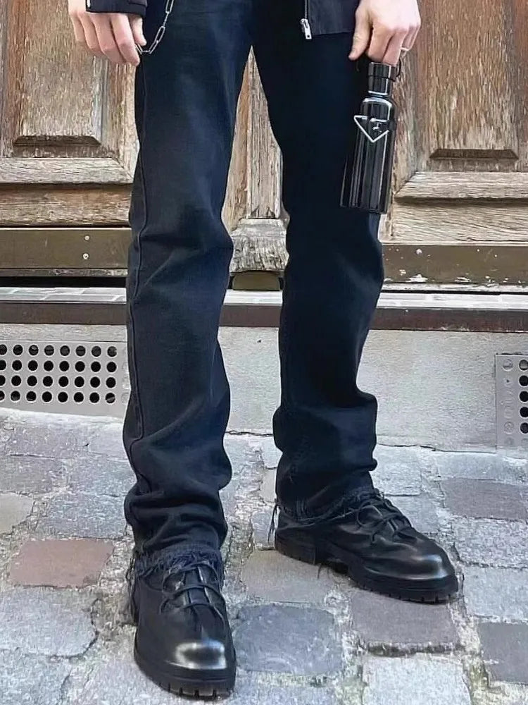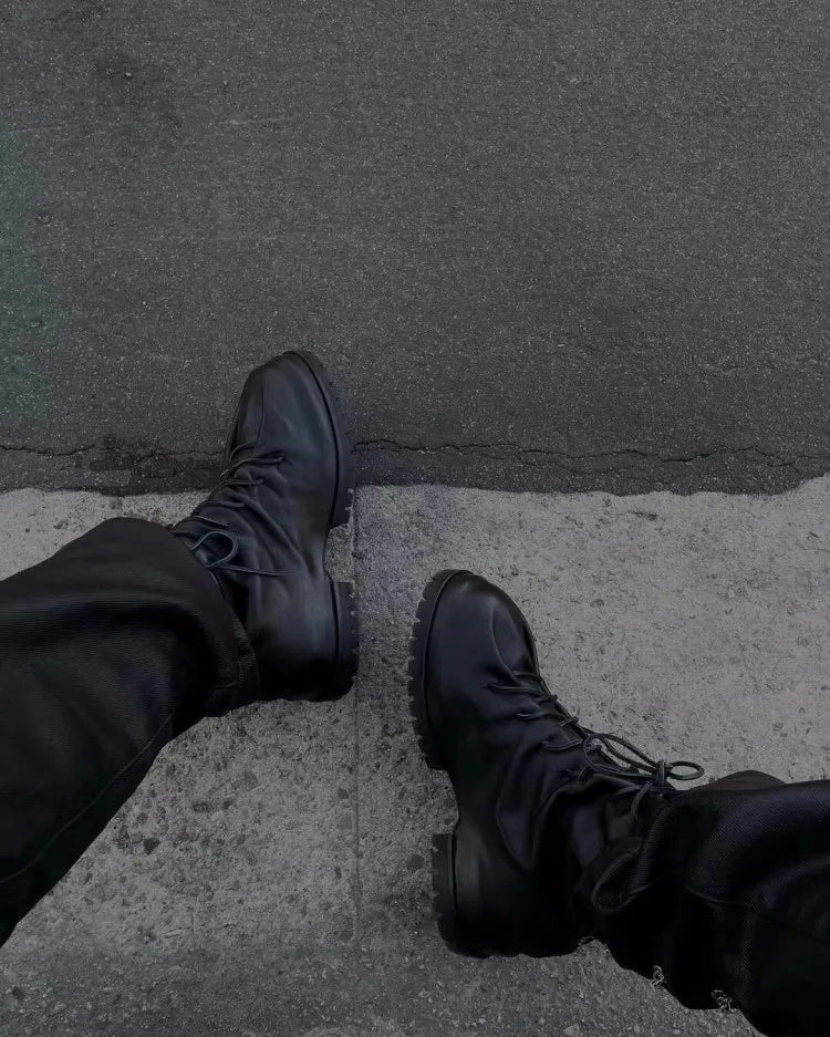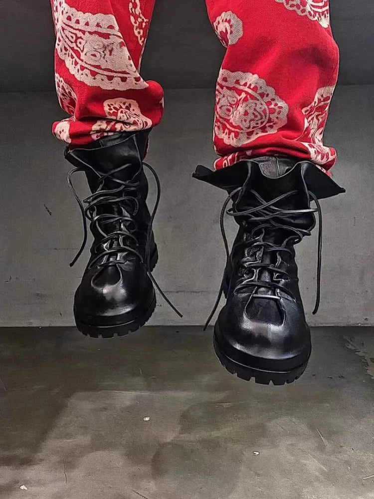 Gothic Designer Men High Top Sheepskin Genuine Leather Ankle Boots Lace Up Thick Platform Runway Shoes Vintage Work Safety Boots