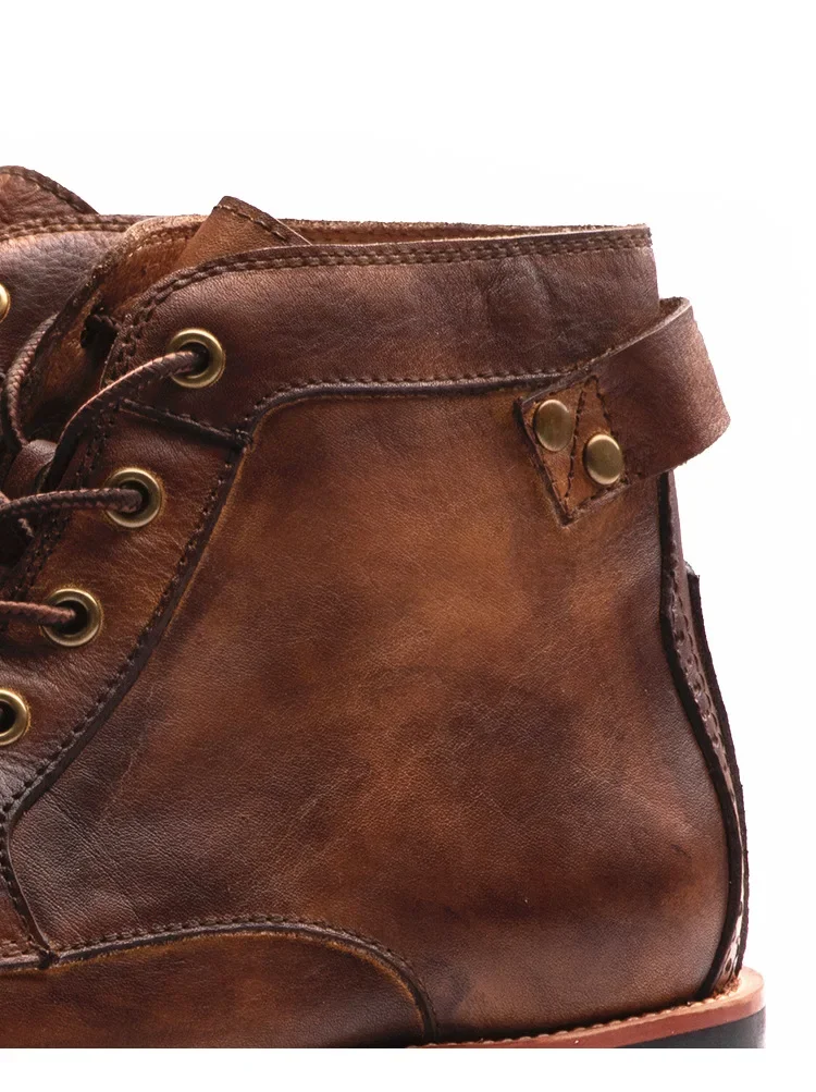 Handmade Leather Men Boots Retro Round Toe Ankle Boots 2025 Autumn Winter Punk Street Style Motorcycle Boots Men Chunky Botines