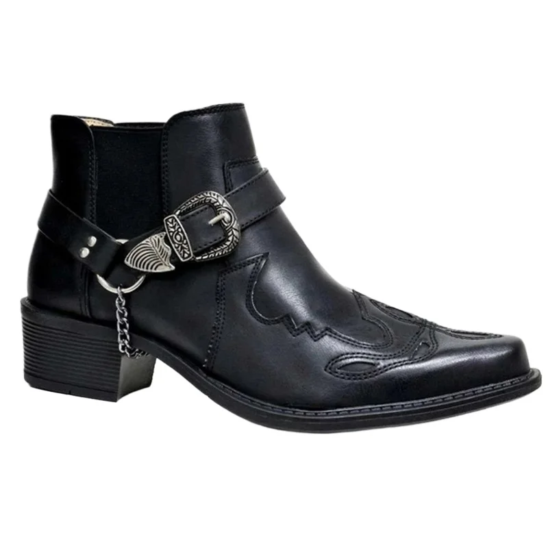 Fashion 2024 Men's Vintage Cowboy Boots Leather High Top Chain Buckle Strap Punk Shoes Pointed Toe Biker Boots Men