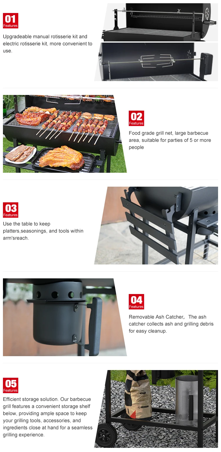 Heavy Duty Barrel Automatic Chicken Rotating Kit Barbecue Grill Iron Manual Rotisserie Charcoal Bbq Grill For Outdoor Party
