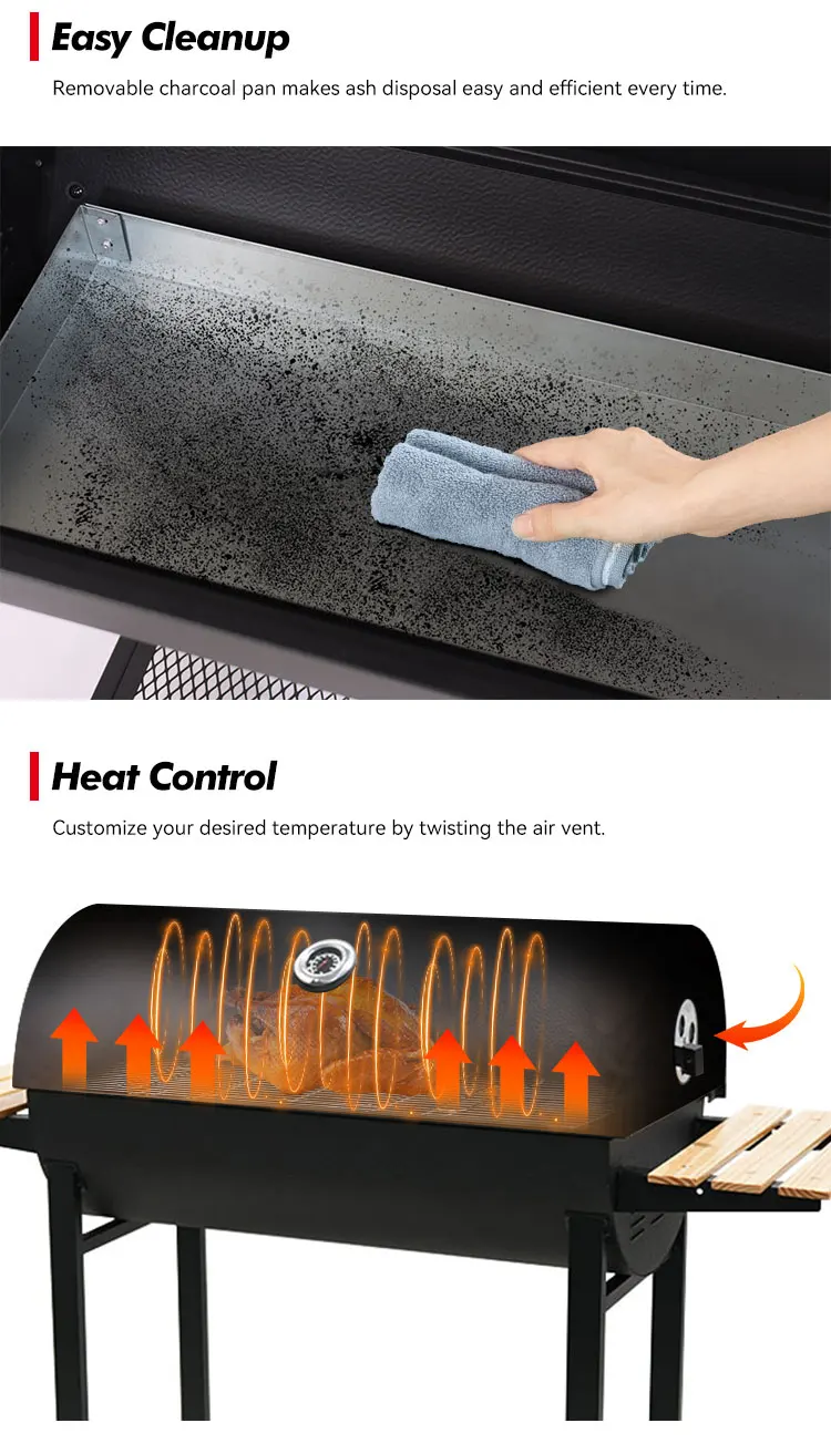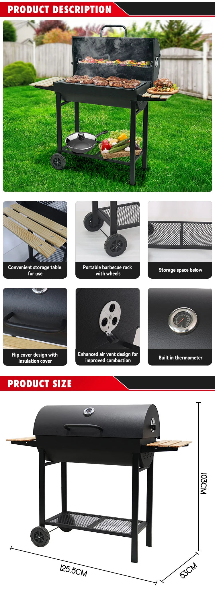 Heavy Duty Garden Barrel Trolley Barbeque Grill Outdoor Smoker Barbecue Grill Charcoal Bbq Grill with Side Table