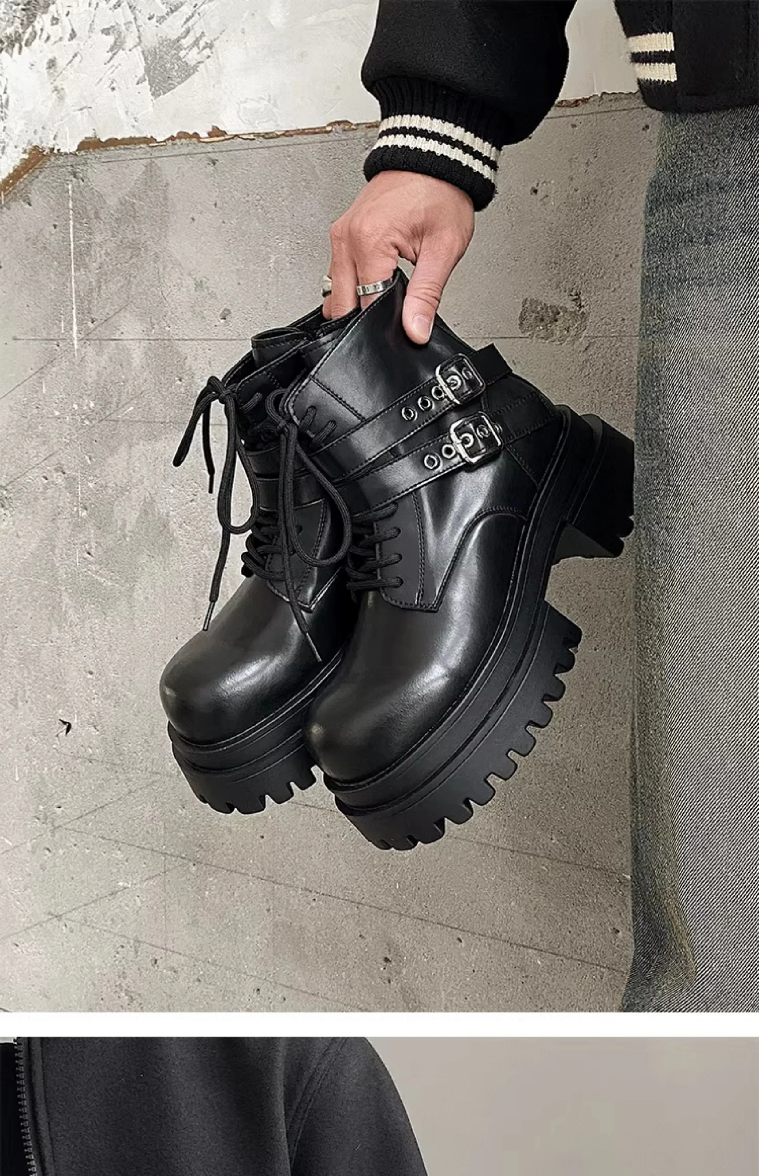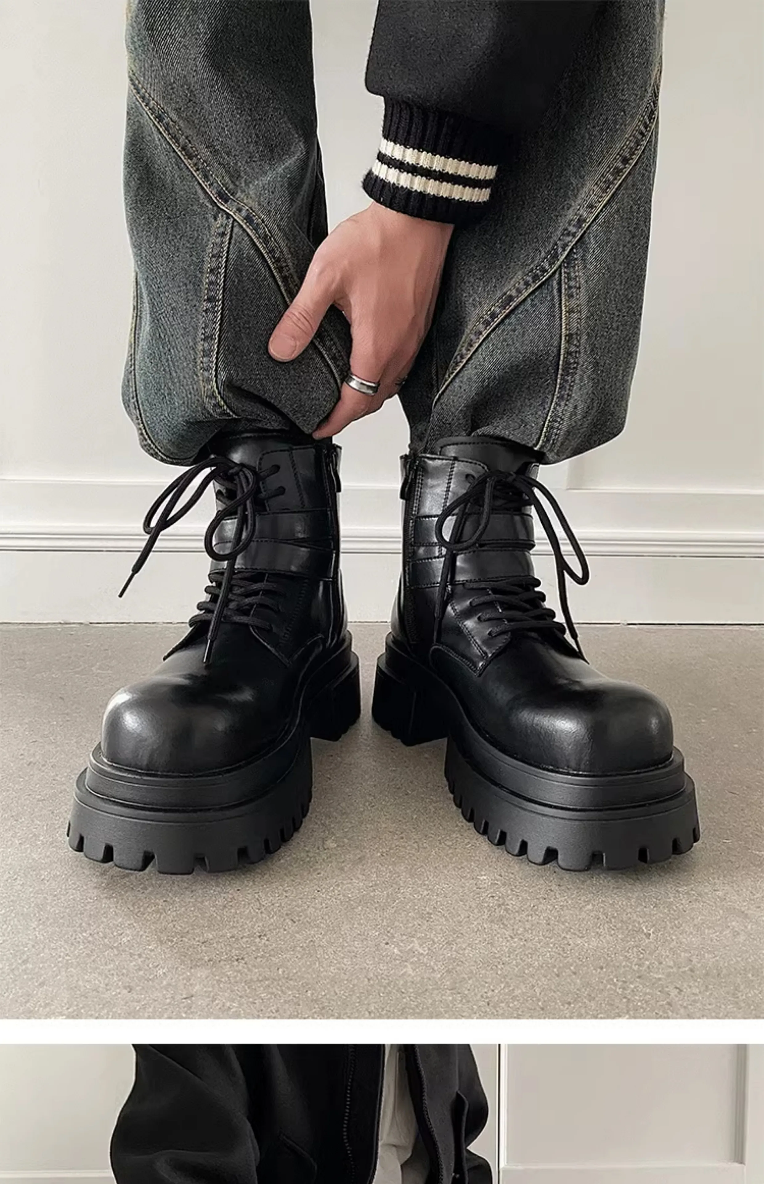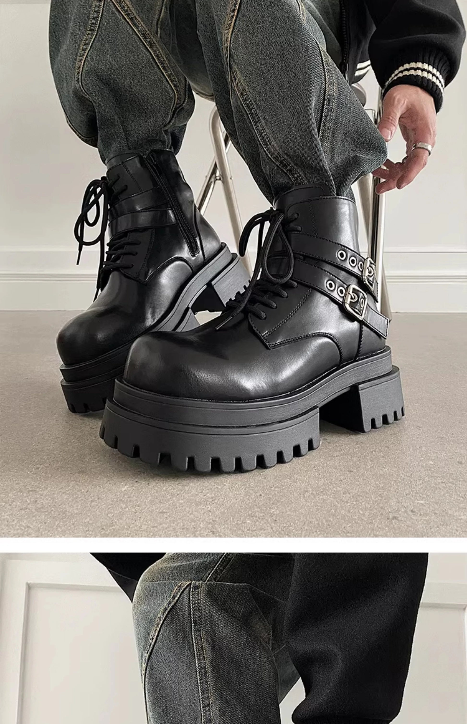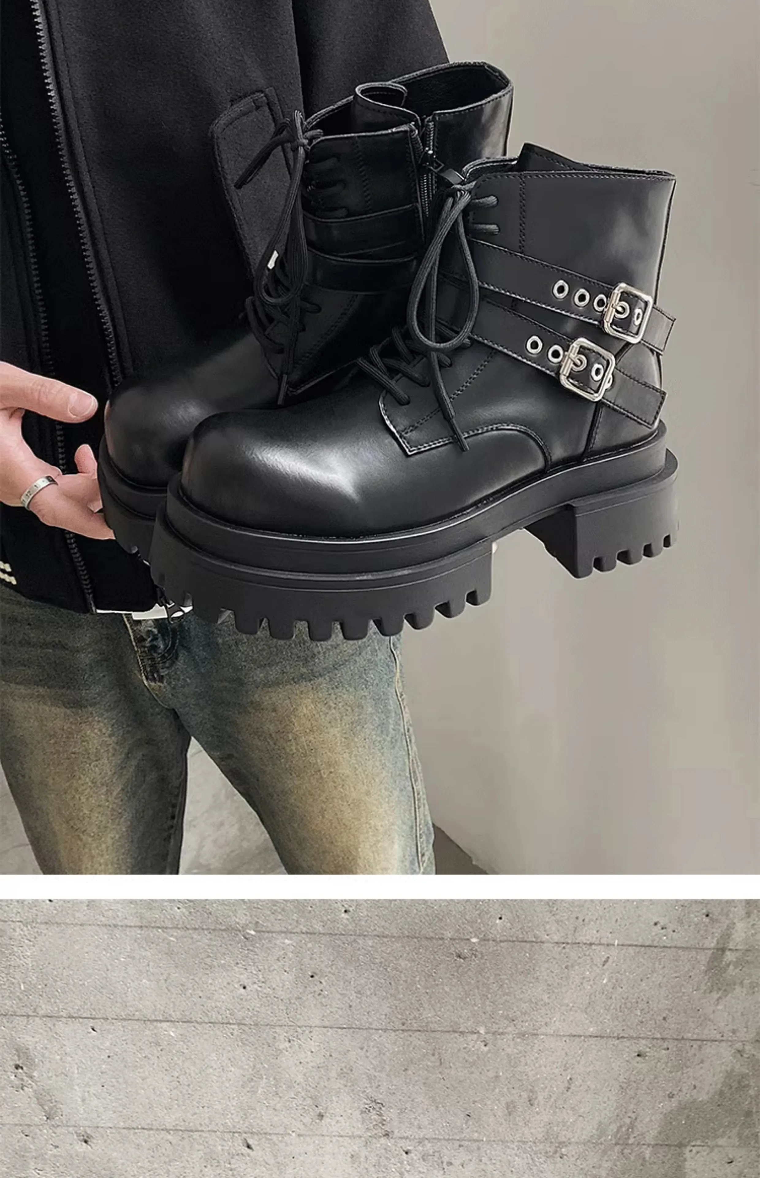 Height increased by 7CM short leather boots for men's dark punk functional motorcycle boots commuting buckle work clothes shoes