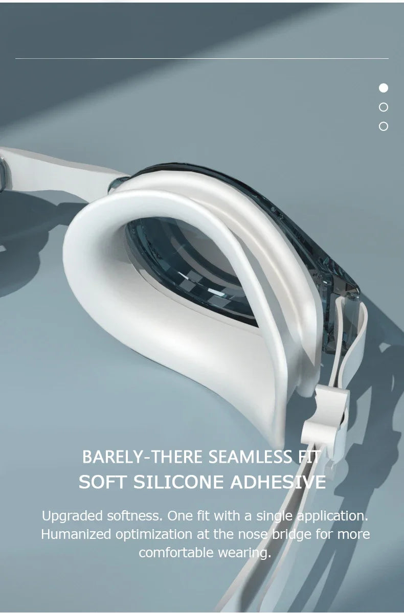 Comfortable fit: experience a seamless swim with our goggles' bare-skin feel, made possible by the soft silicone material that provides a comfortable, leak-free fit.