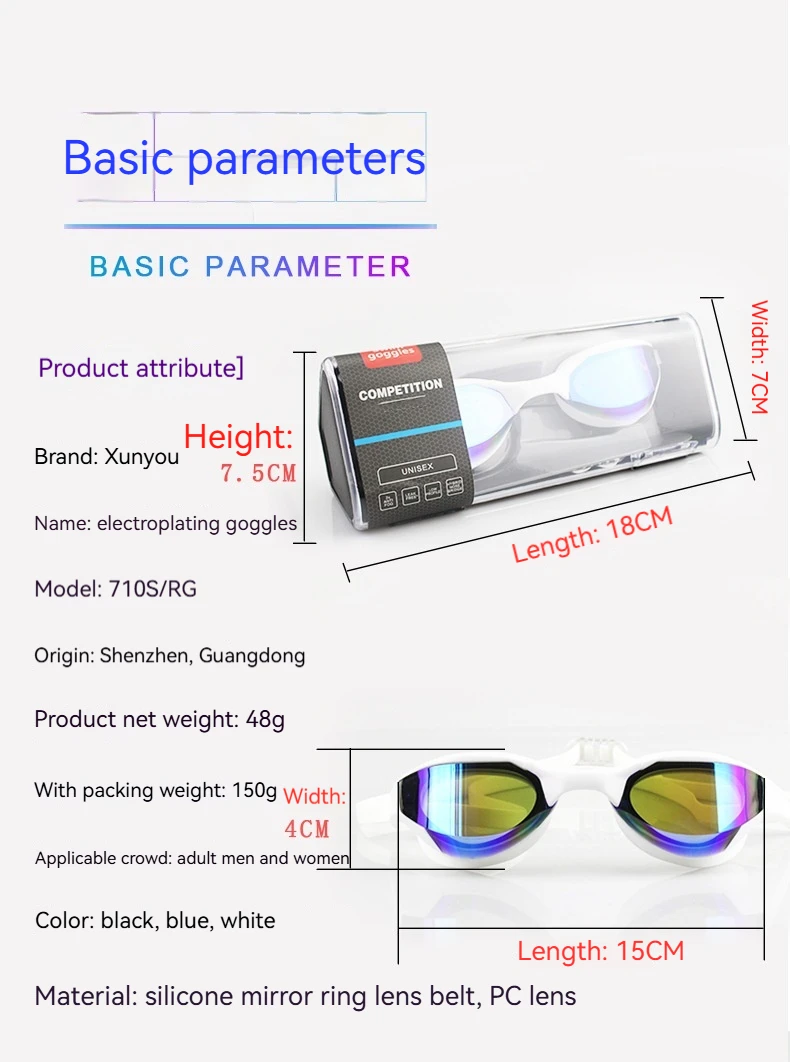 High-end Comfort Racing Color-Plated Swimming Goggles Adult Universal Waterproof and Anti-fog Pool Swimming Diving Goggles