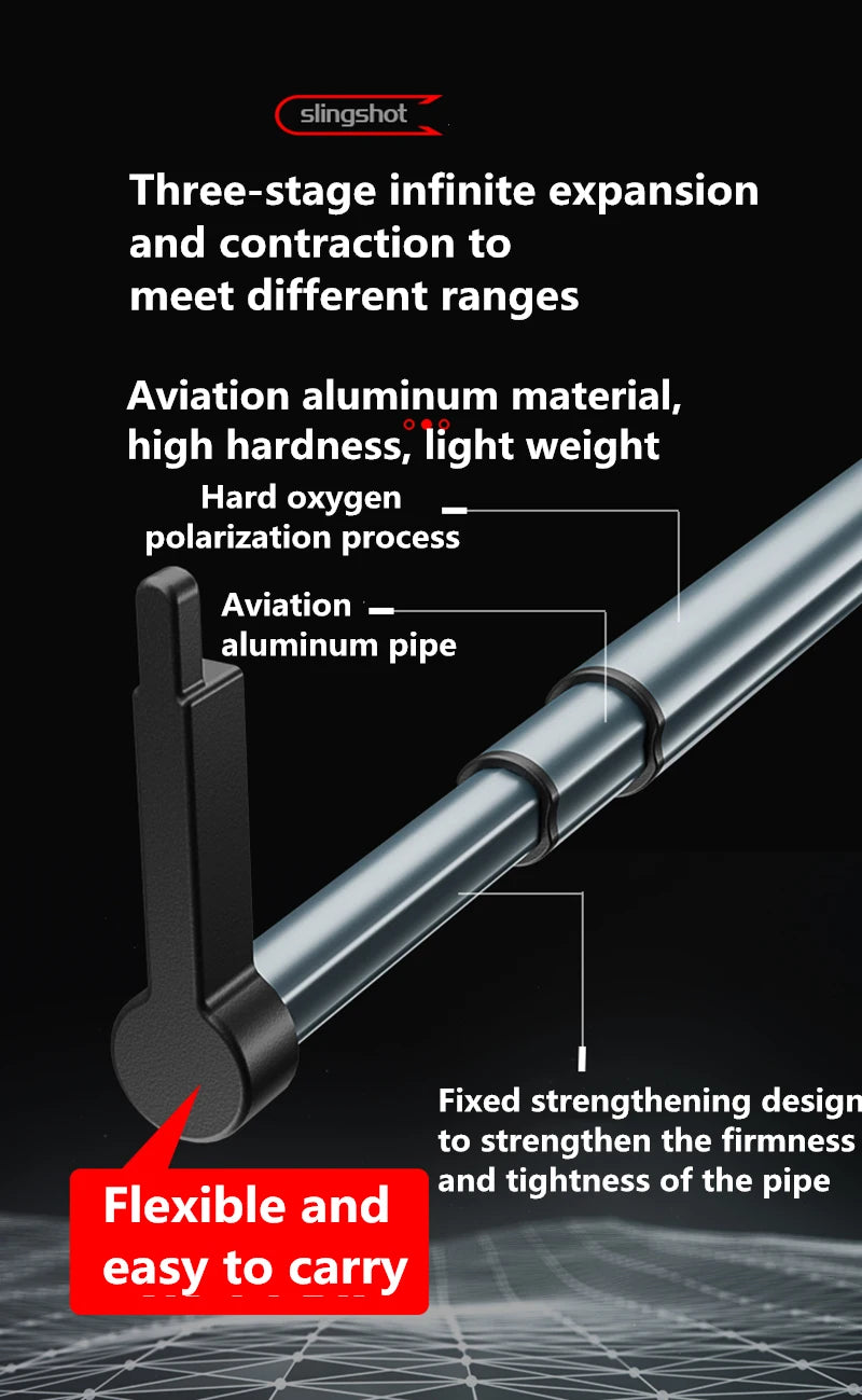 1. Metal slingshot head + aviation aluminum telescopic rod, high quality, strong and durable.
