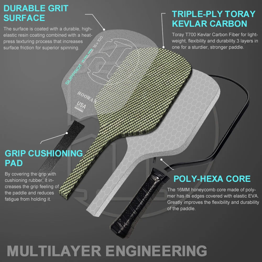 HOOWAN SUPPROT Pickleball Paddle T700 Carbon Kevlar Professional USA Pickleball Approved 16MM Pickle Ball Racket with Case
