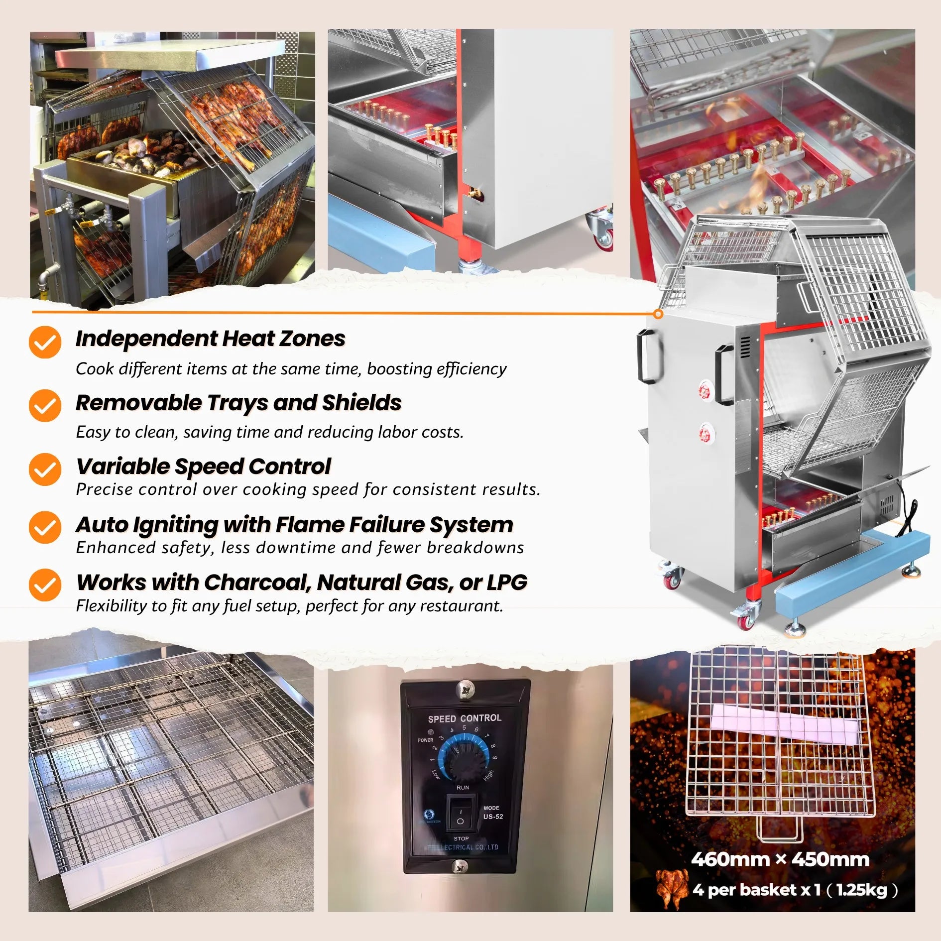 Hot Sale Barbecue Restaurant Charcoal Chicken Rotisserie Machine Truck 220V Flame Grill Broiler With Great Price