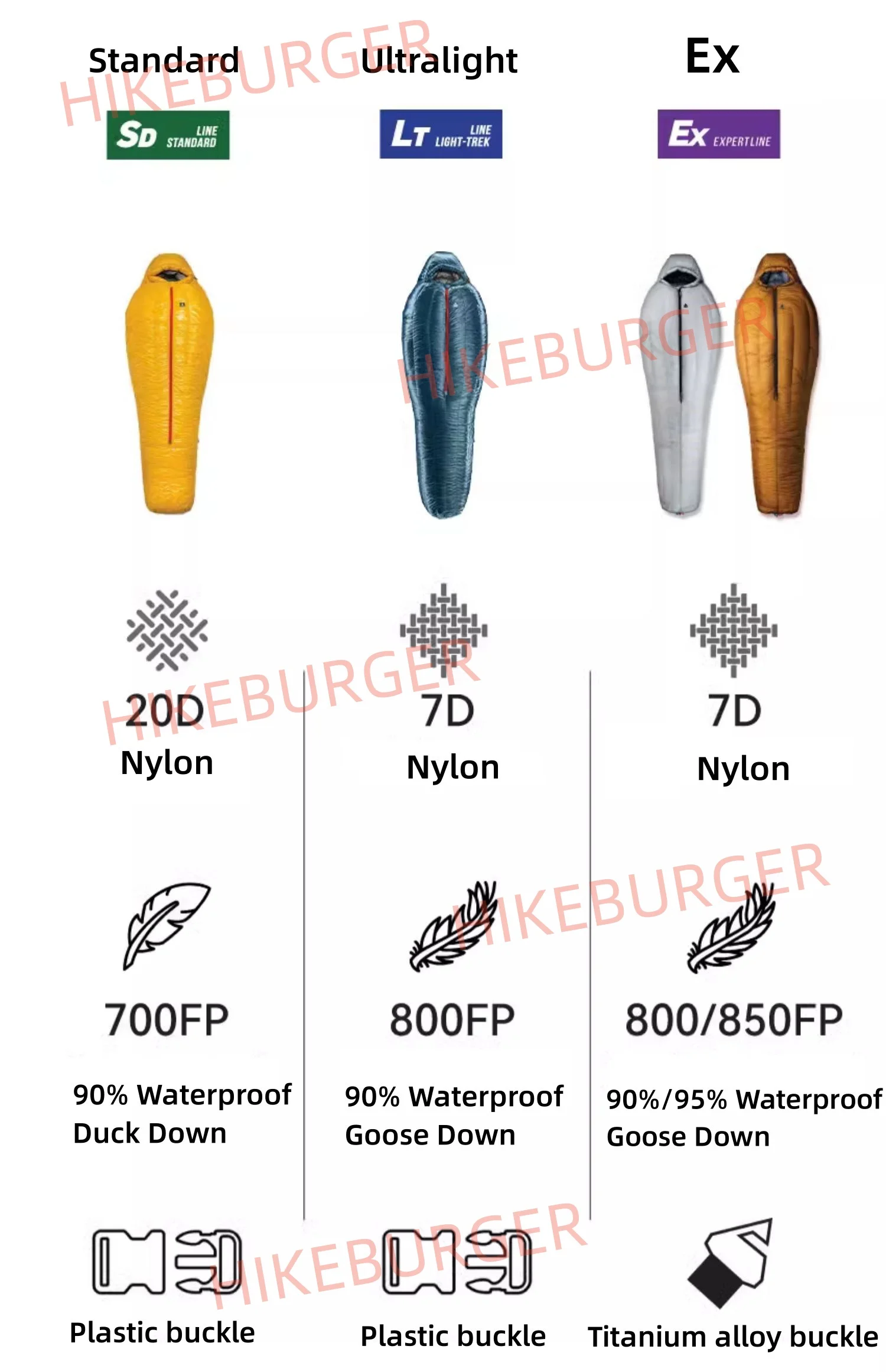 Tips: The above sleeping bags can be used with connecting belts, which can reduce the cold spots on the back caused by the rotation of the sleeping bag with the body during use and prevent the sleeping bag from falling off the moisture-proof pad. The temperature scale of sleeping bag has no fixed value. The specific temperature scale should be judged based on comprehensive factors such as personal physique, usage method, and specific usage environment.